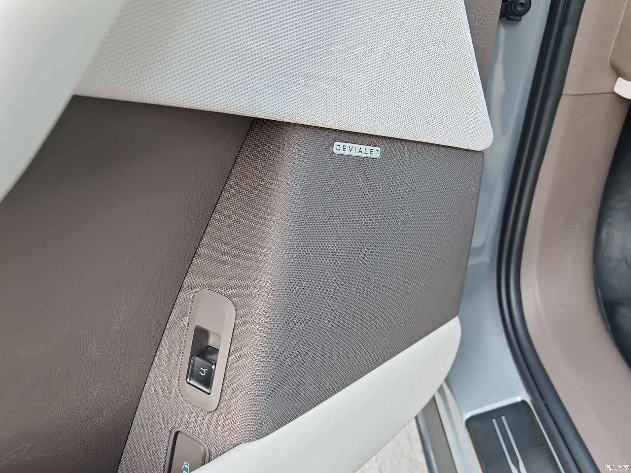 内饰能摸到的地方基本是覆盖了软质材料,米色的很适合家用,音响上面有标注的帝瓦雷的标识,低音不错,和N9的比起来还有点差距