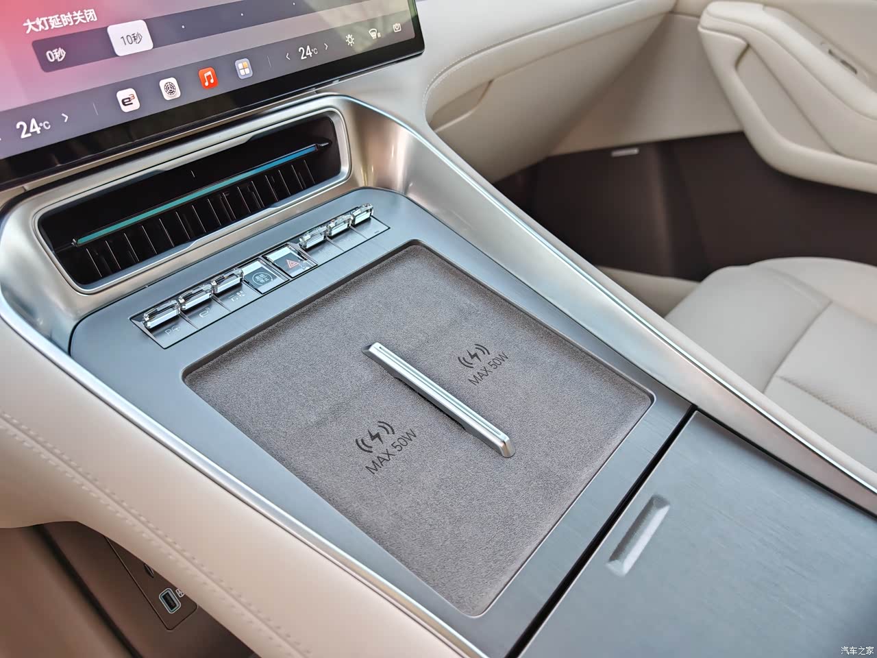 电动门,无线充,易三方各种功能加持,科技配置很多,有激光雷达可以开辅助驾驶,试了几次,实际体验还行,变道,超车比较丝滑,但还有能继续优化的地方