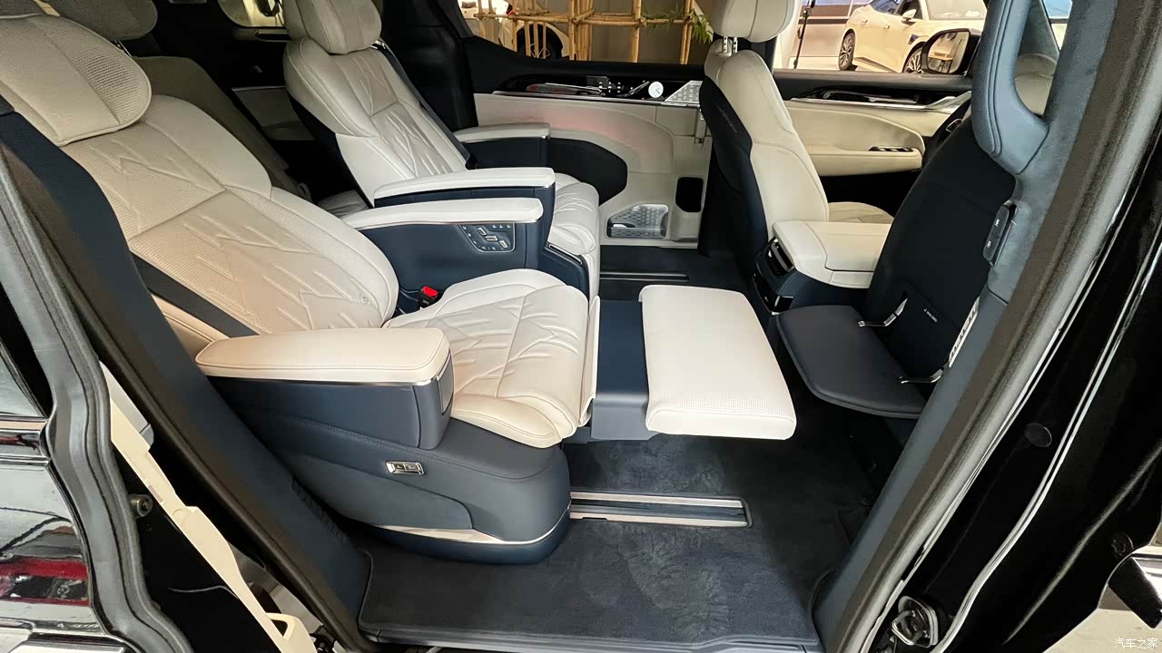 内饰材质豪华,座椅的Soft NAPPA真皮与顶棚的奥斯维Ultrasuede® 麂皮绒触感都非常好,很高级,特别是二排增加了伊姆斯座椅,伊姆斯座椅简直太满意了,特别是我老婆最喜欢,躺在上面都不想起来了。还标配了一个冰箱和后排娱乐屏,简直配在我心坎儿上了。