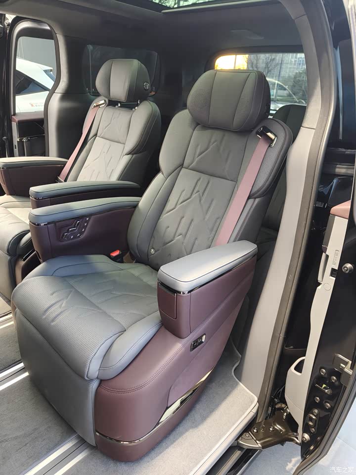 作为MPV,空间绝对是核心竞争力,极氪009在这方面直接“开挂”了。车身长宽高达到5217/2024/1812mm,轴距更是夸张的3205mm,别说二排了,三排坐座椅还能电动调节腿托和靠背,最大调节角度接近160度,躺下的瞬间直接化身“躺平青年”,长途坐车再也不会腰酸背痛。伊姆斯座椅太满意。高档舒适还特别显豪华。而且第二排还配了独立的小桌板、无线充电、杯架,甚至还有可调节的头枕音响,坐在二排听音乐,声音仿佛就在耳边,私密性直接拉满,商务洽谈或者带家人出行,体验感直接拉到顶配!个1米8的壮汉都能跷二郎腿,再也不用体验“膝盖顶前排座椅”的憋屈,空间真是满意