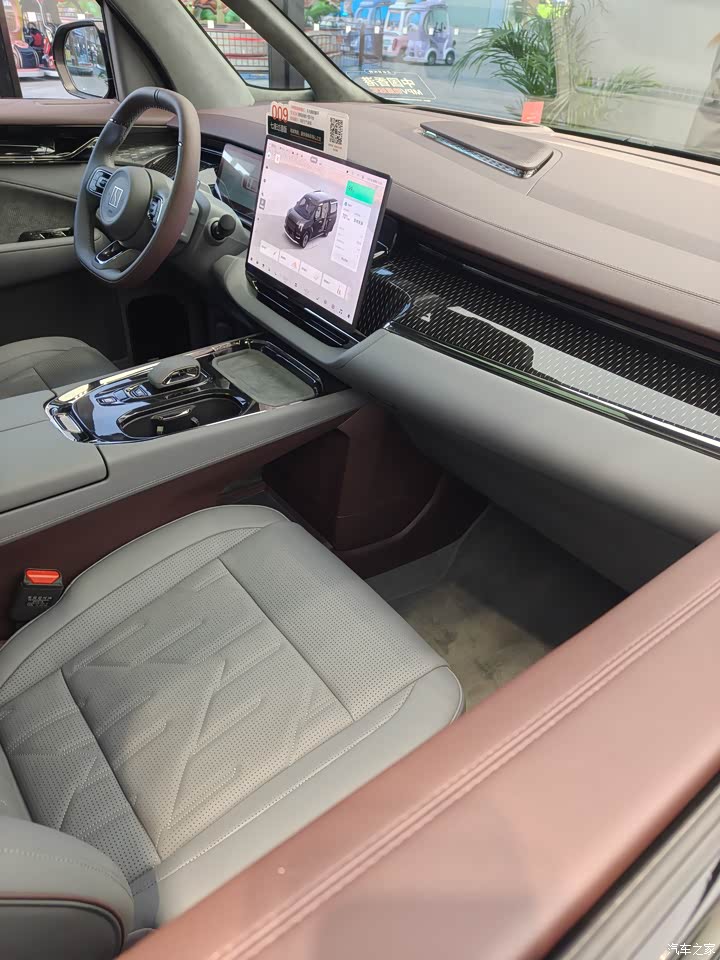 极氪009的内饰把“科技感”和“轻奢感”玩明白了。首先是用料,触手可及的地方全是Nappa真皮、麂皮绒和金属饰板,没有一点廉价的塑料感,连车门扶手的缝线都是手工打造的,摸上去的质感比我家沙发还舒服。 中控那块15.05英寸的悬浮大屏,分辨率和流畅度直接对标平板,操作起来丝滑不卡顿,再也不用忍受传统MPV那种“老年机”式的车机。