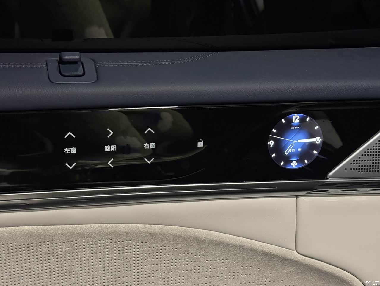 内饰颜色我选的蓝白,和青云灰很配,越看越喜欢。二排门上的时钟很实用 ,车窗、空调调节方便,皮质座椅软包和内饰麂皮绒面不同材质的混搭,商务居家皆可时尚。