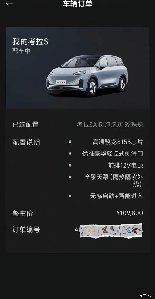 我看车足足看了小半年,看了几十款热门车型,最终提了考拉SAIR。就是喜欢考拉S的抗菌环保内饰、车内超大空间、电动侧滑门、舒适5座,看到这些我是真的很满意。裸车价格10.98万元,我没有车可以置换,纯裸车价加上保险这些七七八八的东西,落地11.38万。