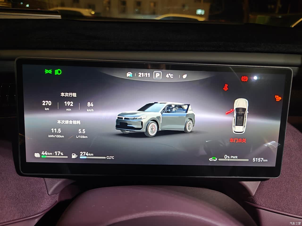 完全没有出现让人感到焦虑的情况。在市区驾驶时,采用纯电模式即可满足需求。其标称的纯电续航里程为259km,在夏天的时候,实际能够跑差不多200km的样子。冬天开启暖气的情况下,续航里程会有所下降,大概能够跑160km左右,不过这个距离也已经够用了。如果在周末进行自驾出行或者跑长途的话,那就切换到油电混合模式,加油和充电都是可以支持的,完全不必担心半路出现没电的情况,馈电状态下每百公里的油耗大概是5升左右。
