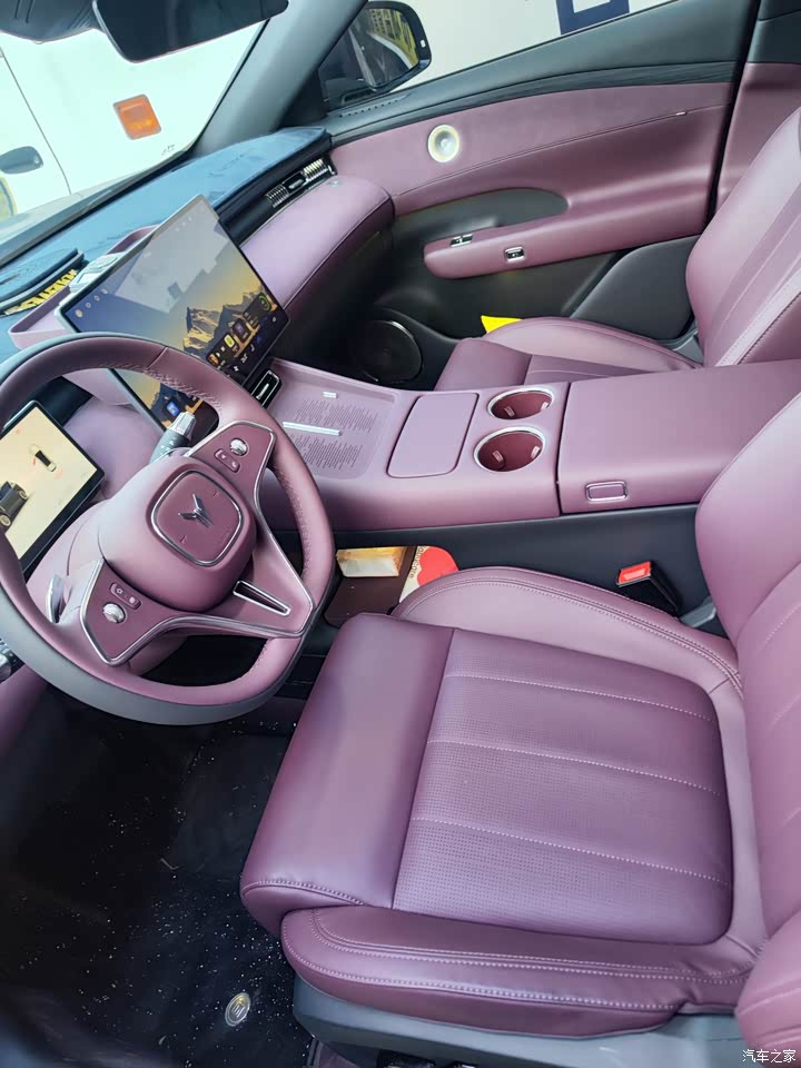 那内饰的紫色简直太合我心意了!其官方名称为琉璃紫,在实车呈现的状态下,并非那种颇为浮夸的亮紫色调,而是一种偏向于深色且富有质感的紫色,随着光线的不同,还会有细微的层次变化出现,再搭配车内的皮质包裹以及金属饰板,瞬间便营造出满满的豪华感。中控台用手去触摸的时候,感觉软绵绵的,绝大多数的地方都采用了皮质材料,就连缝线处理也十分工整,新车基本上没有什么异味,这一点确实值得大力夸赞一番。