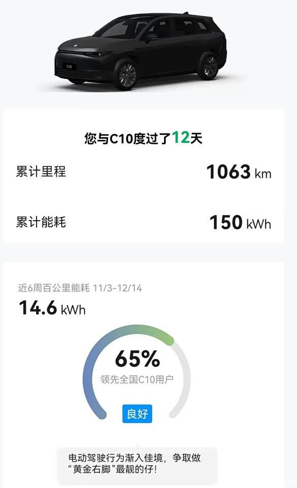 在实际跨城通勤(高速占比70%)场景下,续航达成率处于同级主流偏上水平。支持直流快充,在服务区利用休息时间补能,时间规划更灵活。家用充电桩充电,每公里能源成本极低,长期使用经济性优势明显。