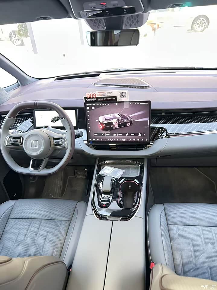 车子的内饰首先给人的感觉就是高级感满满。车辆内部使用了大面积的软性材料,不论是工作台还是车门板以及触手可及的地方基本上都是用了皮质材料,摸上去非常的柔软。内饰颜色也比较柔和,不像很多车企采用白色内饰,看上去虽然时尚,但是感觉整体比较小气,而极氣009的内饰颜色沉稳大气。