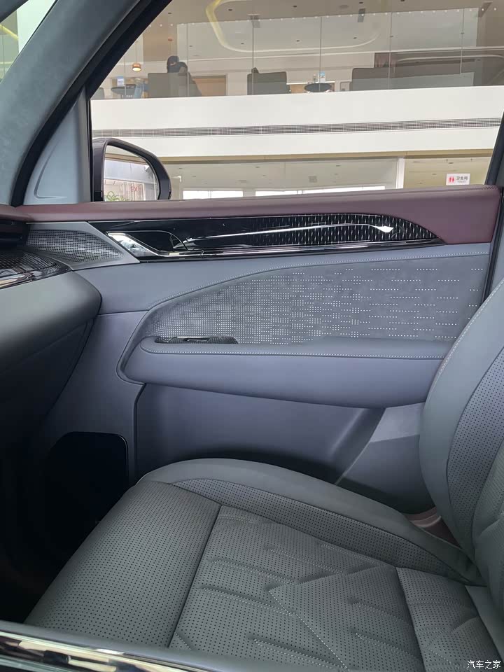 内饰给人的感觉就是“豪华”+“高级”+“智能化”。 伊姆斯座椅豪华、柔软、舒适,真皮座椅包裹着身体,比家里的“大沙发”还舒服。 冰箱、后排屏幕等配置都很高级,“大”冰箱智能恒温,从零下6度到50来度都可使用,可制冷可制热,还可以设置为恒温保鲜模式,春夏秋冬都可以使用,就算离车了也能24小时持续工作,非常实用。 车门上的smartbar也是智能化的体现,可以触屏操控左右车窗开关、车顶遮阳帘等。第二排吸顶屏幕可以用来看电影、K歌、开会等。 无线充电只有前排配备,二三排都只有USB接口能充电。 车机系统操作流畅,除了多功能方向盘和换挡把,几乎全部的操作都在中控屏幕上实现操作,运动模式切换、方向盘位置调节等。