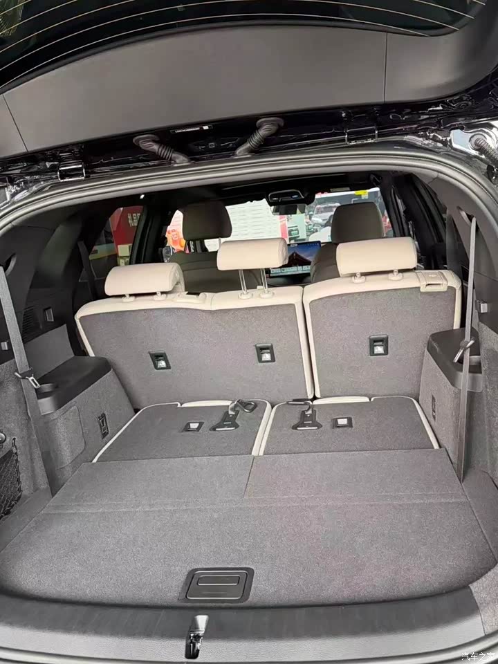我们特意邀请了两位朋友一起乘坐体验,模拟全家出游的场景。我身高178cm,调整好驾驶座后,第二排的腿部空间仍有两拳有余。第三排座椅虽然不算宽敞,但短途乘坐完全没问题,而且进出比预期的要方便。