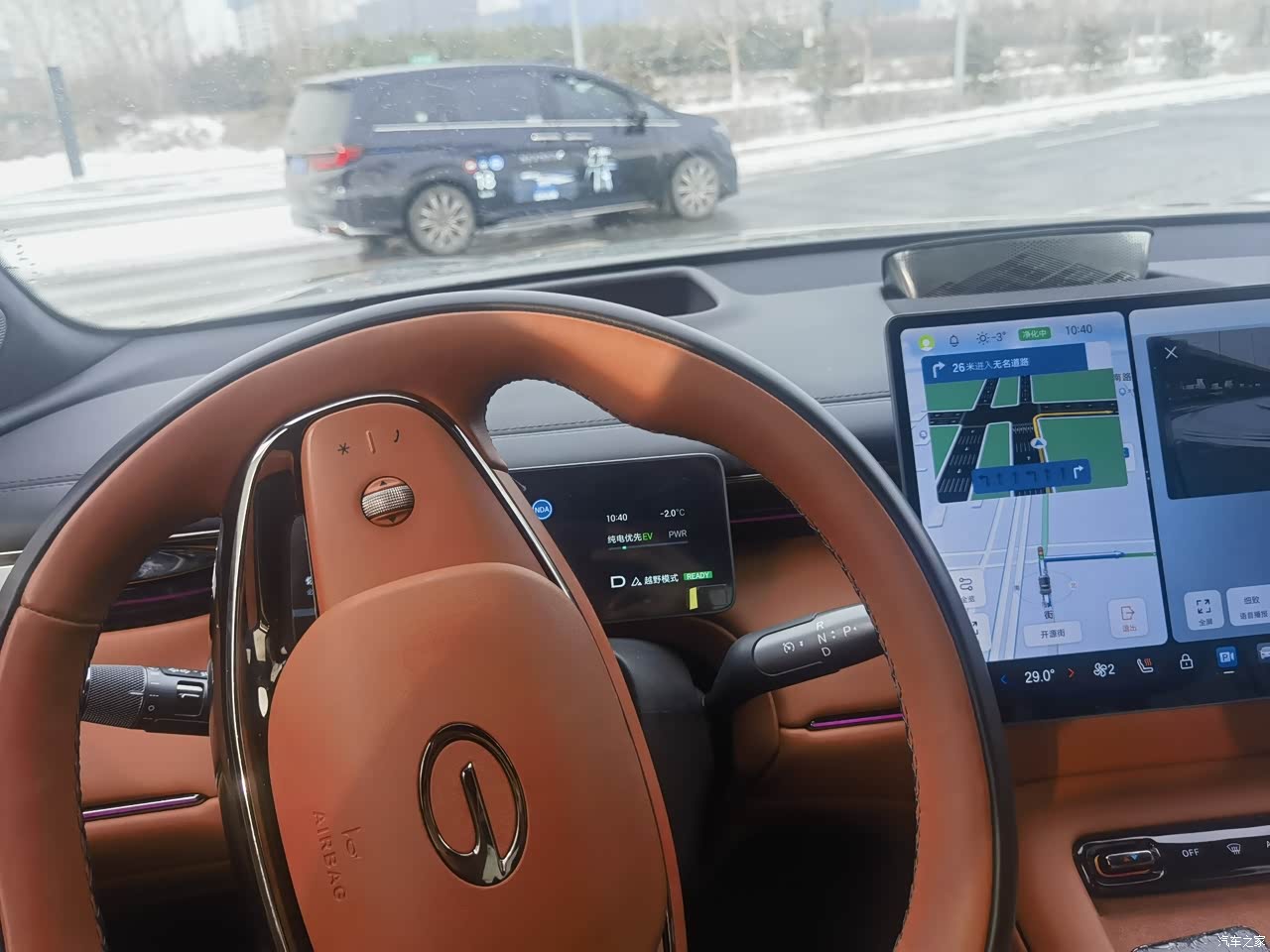 启动车辆,切换到纯电模式,第一感受就是安静和平顺,几乎听不到电机的噪音,车厢里的静谧性远超我的预期。底盘调校明显偏舒适,过减速带或者坑洼路面时,震动过滤得很柔和,不会有“咣当”一下的生硬颠簸。这对奶爸来说太重要了,试驾时娃坐在安全座椅上,没多久就睡着了,一路颠簸都没醒,要是换了别的车,估计早就闹起来了。动力表现也很亮眼,提速快还顺畅,高速上超车时深踩油门,动力随叫随到,完全没有拖沓感。