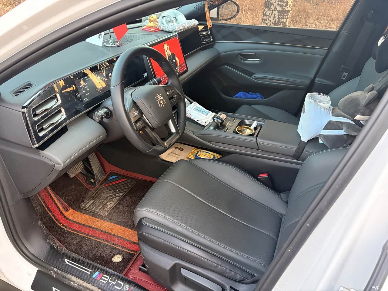 塘塑软包皮座椅深黑色内饰,比较传统的设计。没有现代化新能源时代的淡白色浅色内饰设计。我这环境56线的小城市黑色更适合一些,更适合家用。