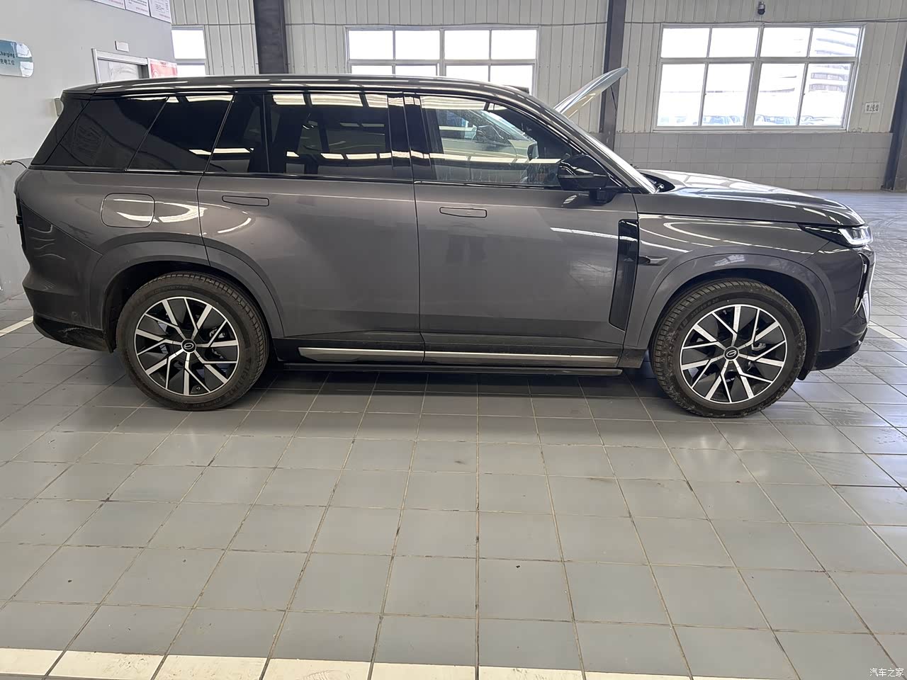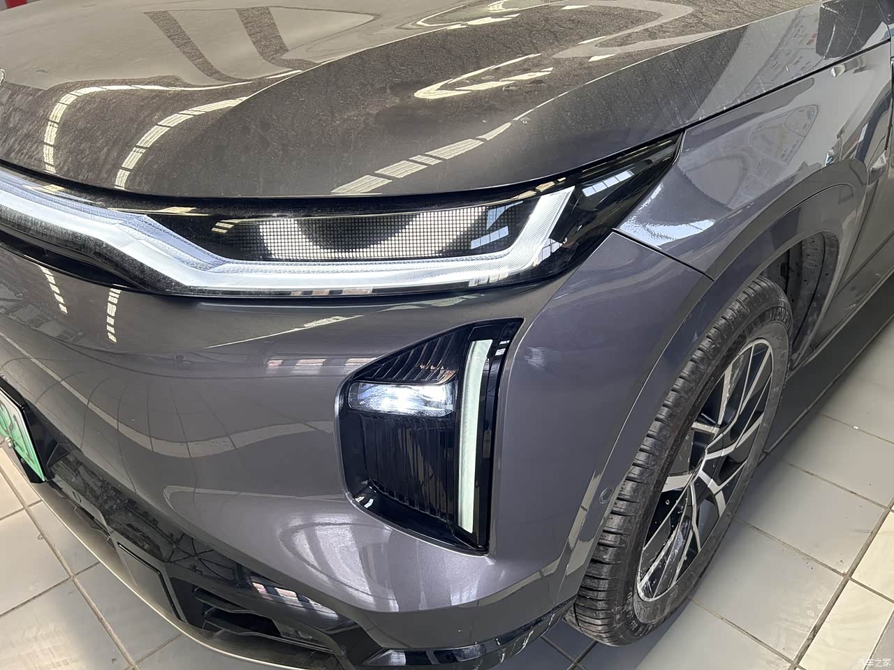 车子挺大气的,侧面看有点像路虎,日行灯挺有特点的,像个眼睛来回动,销售说还可以自定义灯语啥的,也不太明白,不过挺有趣