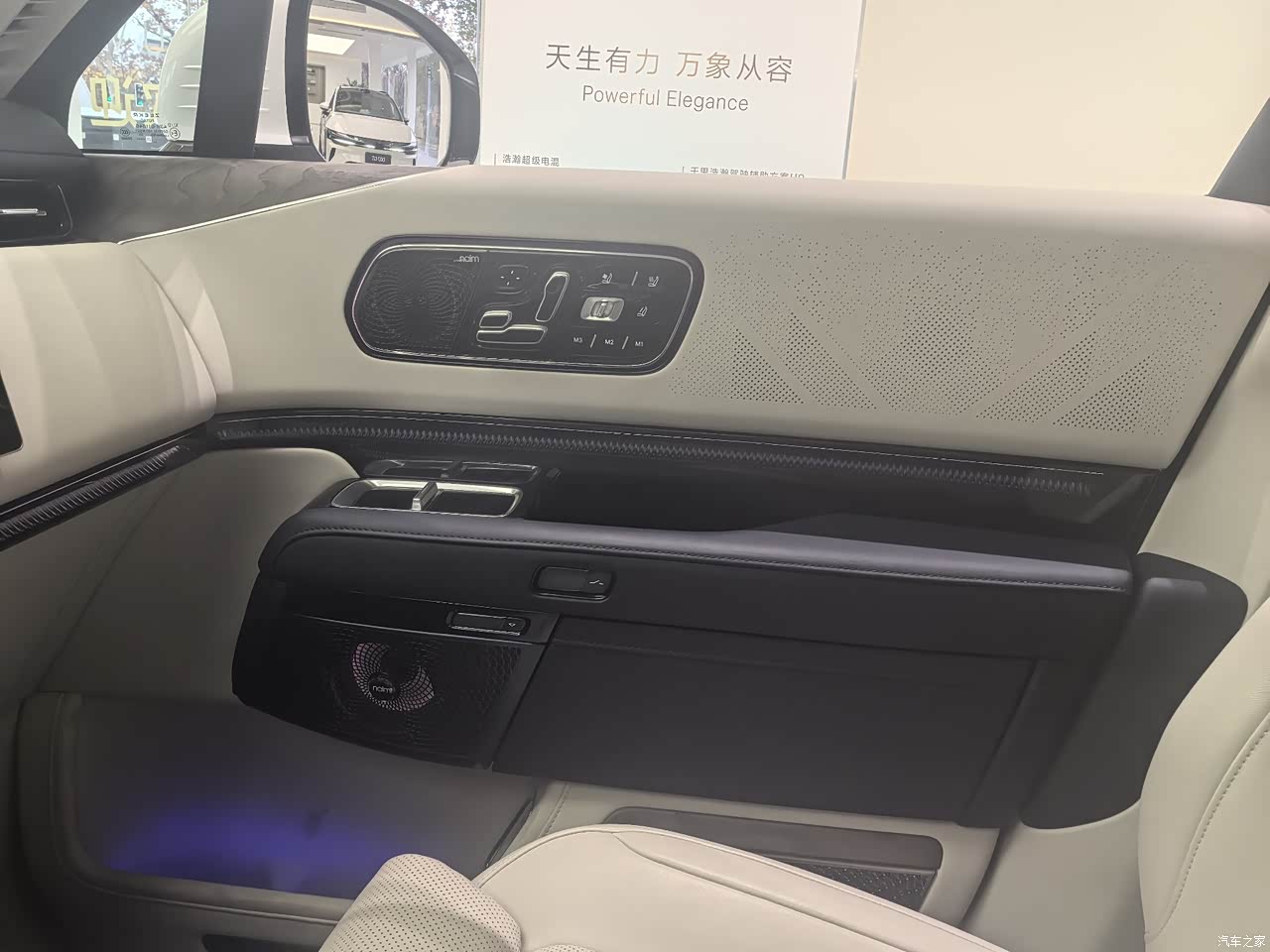 内饰豪华感足、用料足,能摸得到的地方都是真皮和翻毛皮,质感手感好。经过店员介绍后得知,全车采用的是Soft Nappa顶级真皮,这种皮是源自北美公牛皮,毛孔多、透气性佳,触感柔软细腻,和普通的 Nappa材质不在一个档次上。不仅如此车内还采用了北欧天然原木饰板,文理自然看起来很有大自然的气息。极氪9X在内饰上做的最好的是,在门板处保留了大量的实体操作按键,让车上的所有乘客都可以,非常直观便利的,操控座椅的各种功能。还有就是车内的屏幕非常的多,并且别出心裁地提出了单屏幕和双屏幕的方案,可以根据自己的用车场景来搭配选择,比如中控两块屏幕,只想要一块的话,可以减5000块钱的现金优惠。