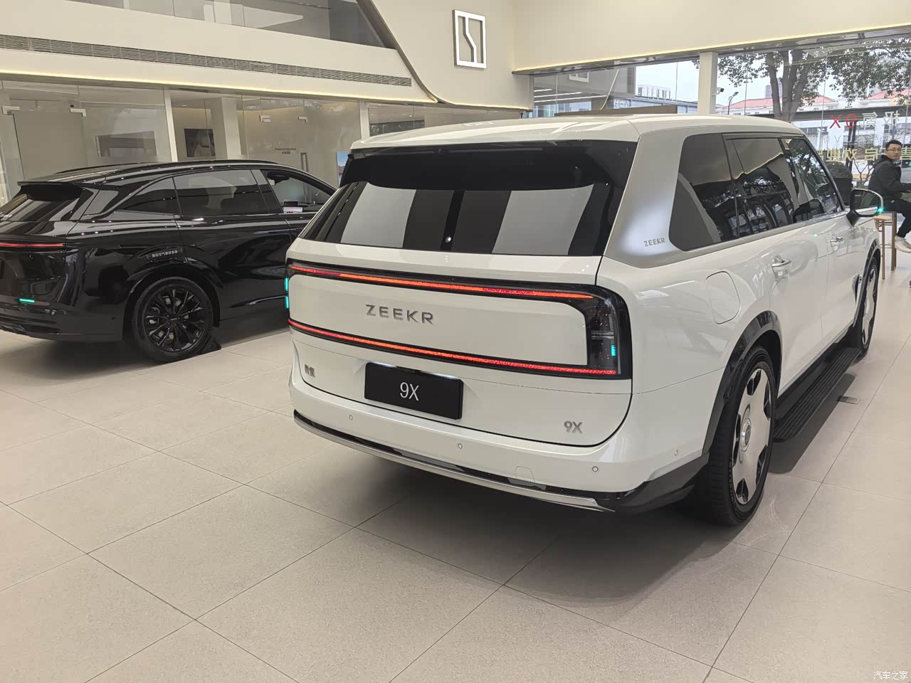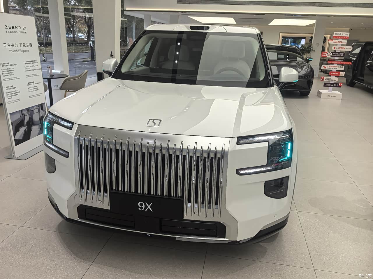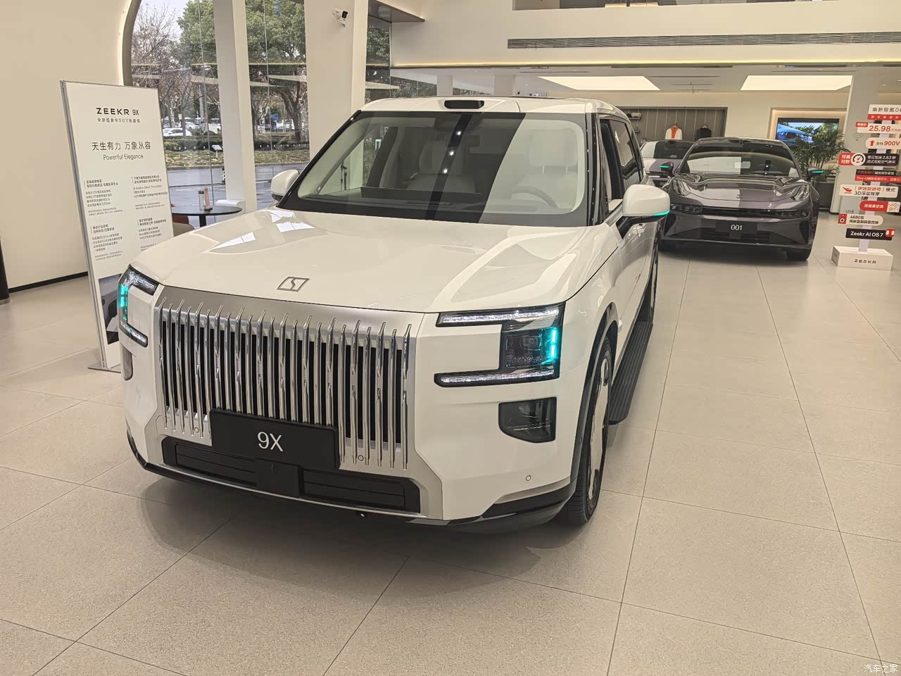 外观大气,前脸有力量感也有科技感,大尺寸的贯穿式格栅搭配犀利的LED大灯,看起来特别有庄严感。一同看车的其他朋友说极氪9X比库里南看起来还有气势一些。我比较喜欢极氪9X的整车线条设计,线条流畅硬朗,从车头到车尾的腰线贯穿始终,勾勒出饱满的车身轮廓,搭配大尺寸的镜面轮毂,进一步强化了力量感。