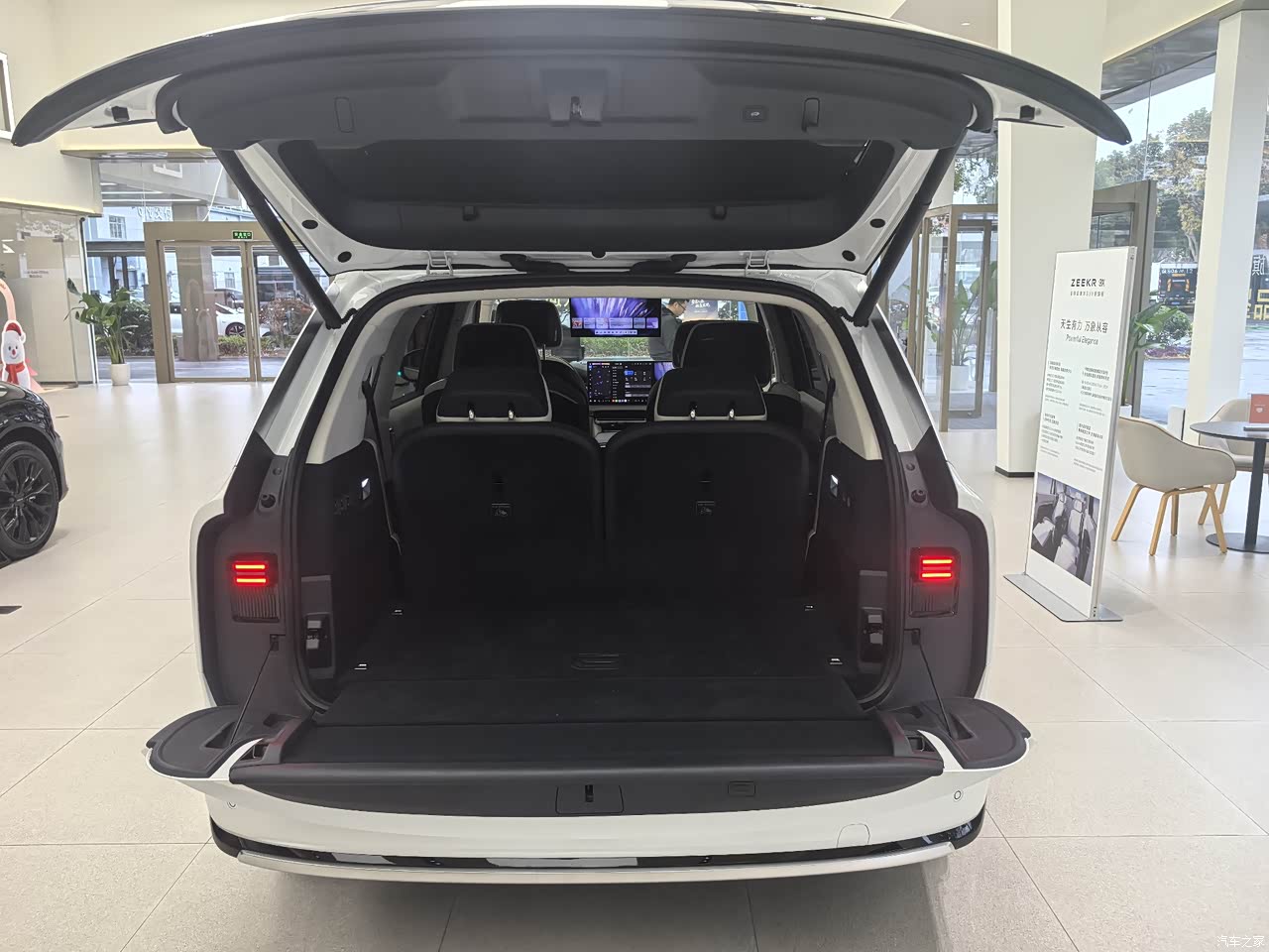 我身高1米8,亲测前后排空间都很宽敞,调整好前排驾驶坐姿后,头部还有一拳多的距离,腿部空间也很充裕。二排空间是大杀器,腿部能轻松留出两拳多的距离,跷个二郎腿完全没问题,头部空间也足够,而且二排还可以设置成大沙发模式和零重力模式,整体体验更上一个台阶。极氪9X还有一个很完美的地方就是天窗面积特别巨大而且还是可开启的设计,不仅一二排可以享受天窗,就连第三排也有独立的天窗口。