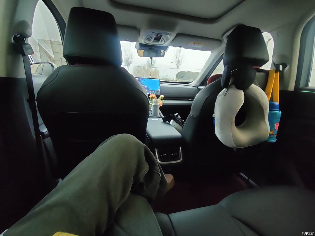 空间也是我特别满意的一点。我家都是大个子,老公和儿子都一米八多,坐后排翘个二郎腿还绰绰有余。我有时到单位早了,或者中午得空,就直接在后排躺平睡一会儿。偶尔赶着换工作服,我161的个子,站在后排居然能差不多站直,真心方便!