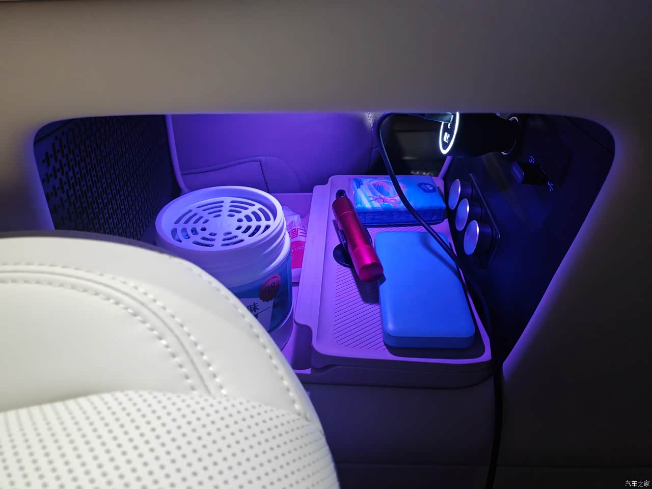 白红内饰,显得大,干净,氛围灯高级感十足,唯一的缺点就是不耐脏,感觉都不敢在车上吃水果,怕把内饰染脏了。