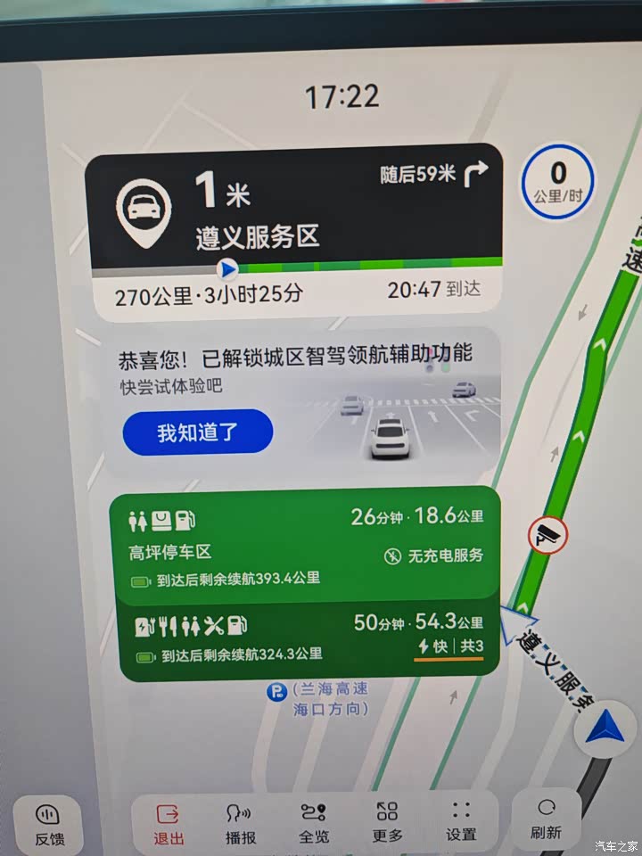 从贵州回来四五百公里,中途应该是不需要充电的。但是怕电池20%以下伤电池,所以在高速服务区充了一次电,快充,就几分钟,充了100km,我觉得除了节假日充电难等无解难题,平常是没有任何补能焦虑的。我现在自己装了充电桩,都基本一周从充一次电。