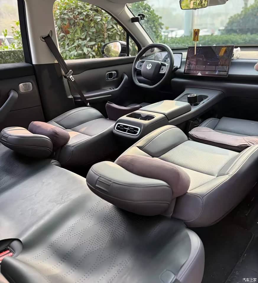 内饰采用大量可回收环保材料,没有明显异味。中控台设计简洁,所有功能几乎都集成在大屏里,需要时间适应。座椅的腰部支撑调节幅度足够,能缓解长时间驾车的疲劳。内饰材质强调了环保和婴儿亲肤级接触面,这让我即使装载了有味的橡胶反光板,车内空气也能较快清新。