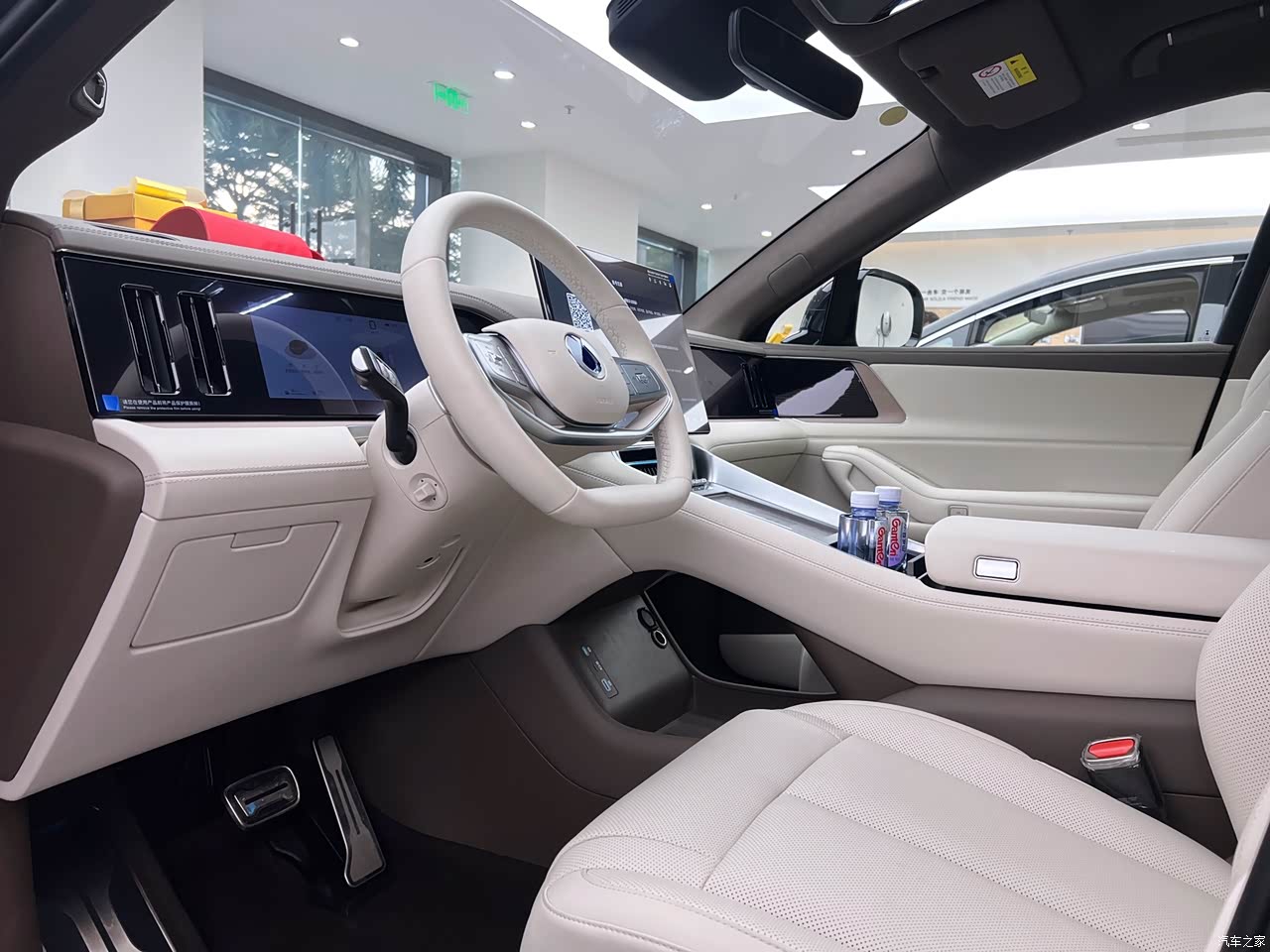 我选的是浅色系,浅色搭配真木饰板和软性包裹,一坐进去就觉得特别敞亮,完全没有压力感。最惊喜的是用料,全车摸得到的地方几乎都是软乎乎的!而且新车几乎没有什么异味,提车当天就敢带娃出门,这点对于有孩子的家庭太重要了,座椅绝对是内饰的加分项,移动大沙发!