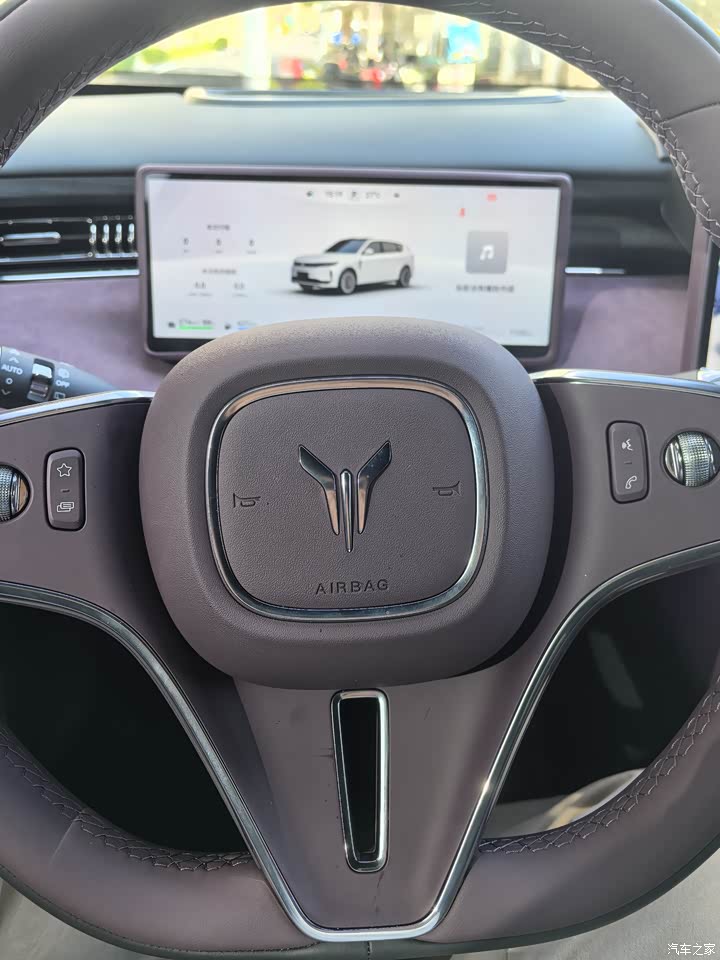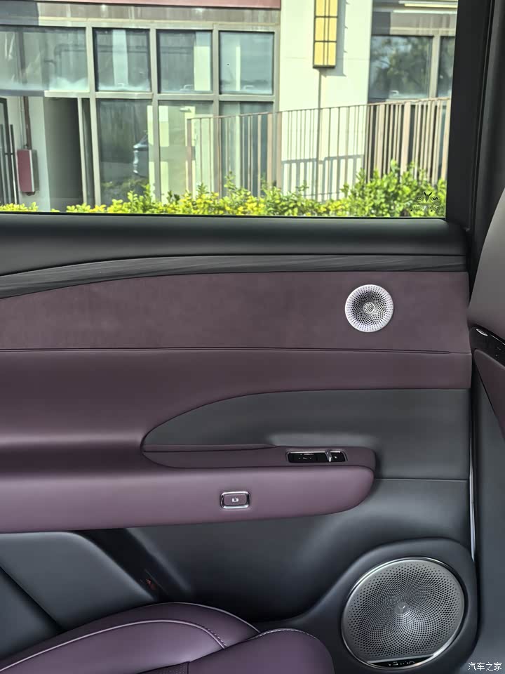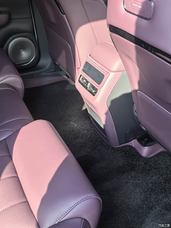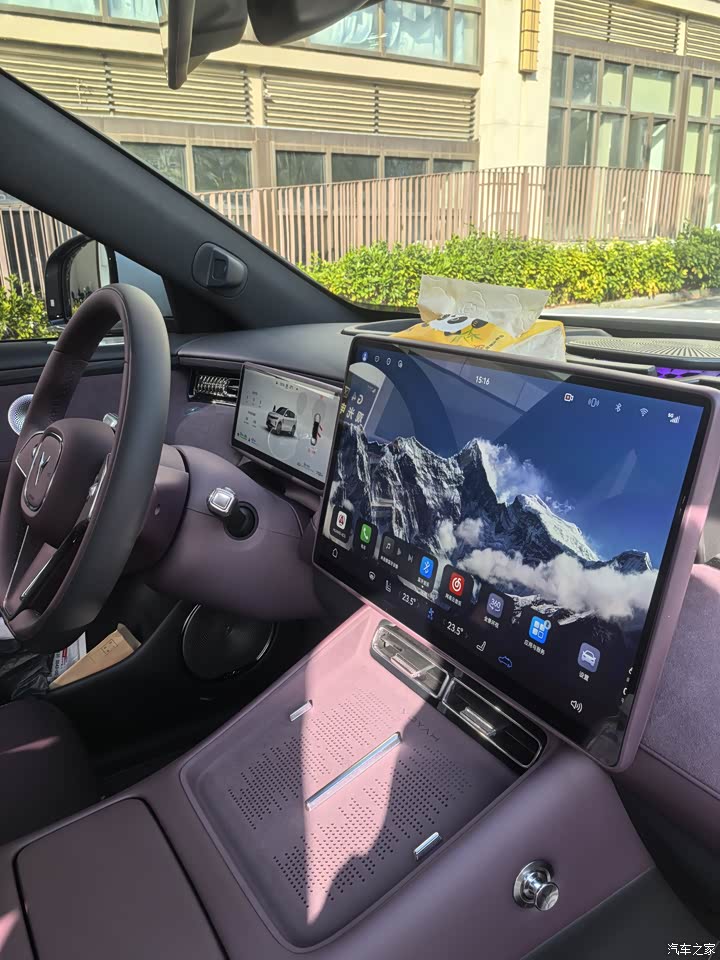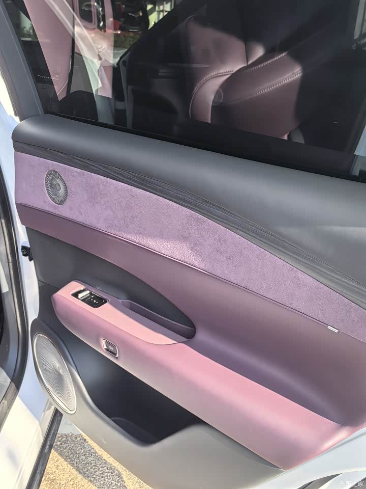 紫内饰给人留下了深刻印象,其并非俗气的紫色,而是一种偏向沉稳的质感紫,与大面积NAPPA真皮相互搭配,摸起来柔软舒适,触感极佳,车内几乎没有异味,在提车的时候仅仅存在淡淡的皮质香味,经过通风几天便消失了,对于家里有孩子的家庭而言非常友好,中控采用悬浮大屏并配有木纹装饰,很好地平衡了科技感与居家感,仿麂皮材质的车顶也提升了车辆的档次。