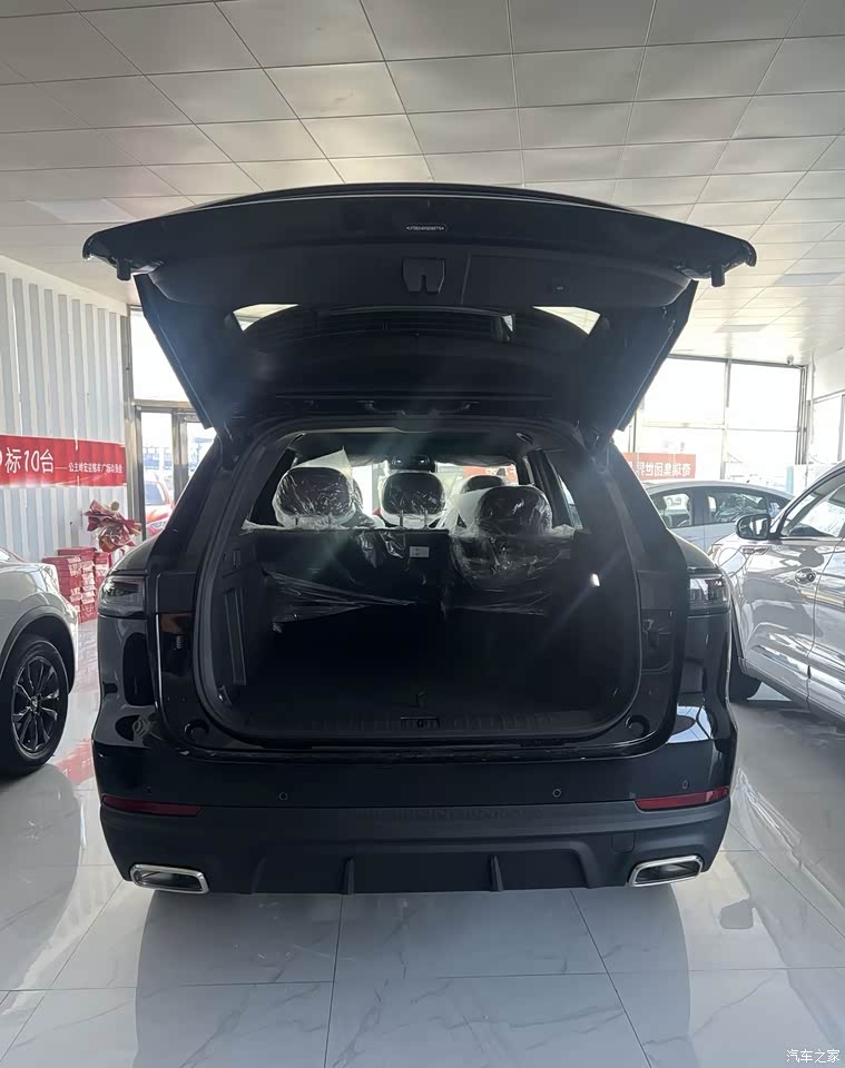 瑞虎9X有惊喜也有槽点! 今天去试乘试驾了瑞虎9X,说说自我感受吧。 第一点外观确实很有震撼力,很霸气的前脸,特别是直瀑布式进气格栅搭配LED大灯,视觉冲击强烈,车身线条也极具力量感。4.8米多的车身长度看起来不臃肿,很协调自然,大小很适合家用。 第二点就是车辆机械素质还不错。20.T 的254匹马力的发动机,马力确实很顶,加速推背感明显,8AT变速箱换挡平顺,底盘调校偏舒适但过弯支撑性也不错。车身的高强度钢材使用也非常的多,看起来这车就很扎实稳重! 第三点实用配置比较丰富。我看的是豪华型版本,基本上常用功能都有,比如前排加热、通风、座椅电动调节、全景天窗、360度全景影像、自适应巡航等,还有各种手机型号的手机互联这点必须好评,基本上市面上所有手机都可以互联! 第四点空间真不错!前后排空间都很充裕,我一米七五的身高坐在后排头部和腿部都有两拳以上的距离,后备箱也非常的大,把后排座椅放倒以后妥妥的大床啊。户外露营完成可以睡车上啦很实用方便!