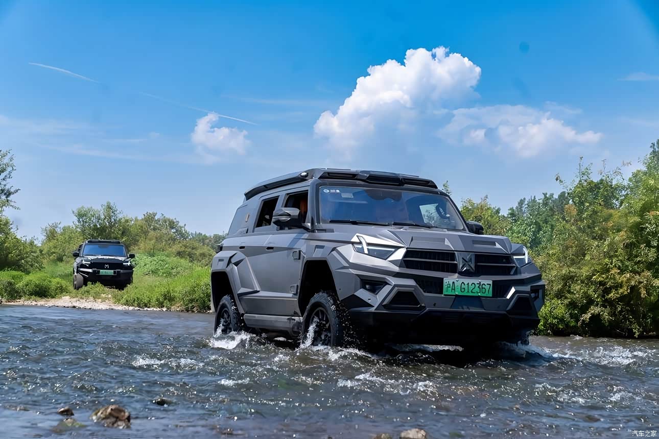 我是上海人,做娱乐传媒行业,80后。家里车库不算小,有一台奔驰轿车给我平时上下班开,老婆有一台奥迪Q5,一家人的城市出行基本够用了。但我这个人,骨子里一直对越野有点执念。以前就喜欢周末约上朋友去周边的泥地里跑跑,总觉得那些城市SUV不够劲。所以琢磨了很久,最后还是买了一台越野车。先说说我最满意的地方。第一肯定是它的越野能力。我买它就是为了玩,它的三把锁加上空气悬架,确实能解决很多路况。上个月去了一趟浙江的越野公园,有个大坡比较陡,还有交叉轴,我这台增程版的动力很足,稳住油门就能上去,底盘升高之后通过性很好。而且它有一个“蟹行模式”,在侧坡或者狭窄的地方特别有用,这在同级别的硬派越野里是很少见的。第二满意的是它的后轮转向。这车尺寸很大,五米多长,两米多宽。本来我以为在上海市区开这车会很头疼,但有了后轮转向,转弯半径很小,窄路掉头一把就能过,比我的奔驰轿车还灵活。这点对于日常在城市里开来说,实用性很高。第三是它的涉水能力。上海虽然不常发大水,但下雨天的积水还是有的。有一次下班路上遇到暴雨,前面有辆车不敢过,我开着涉水模式直接就过去了,中控屏还能显示水深,心里很有底。