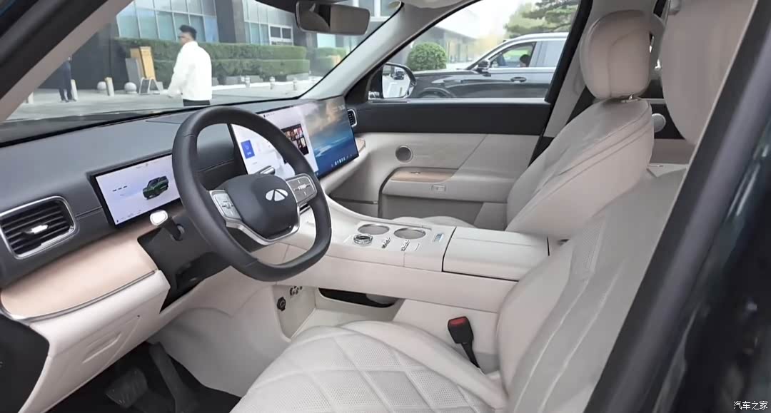 内饰整体质感不错,采用琥珀棕色配色,营造出温馨的家用氛围。车内大面积使用软性材质包裹,触感细腻,不过配色相对不耐脏,有小孩的家庭需要多注意清洁。30英寸6K寰宇屏贯穿中控台,视觉效果震撼,搭配环抱式座舱设计,科技感和豪华感都有体现。美中不足的是内饰部分细节做工有待提升,部分接缝处不够均匀。