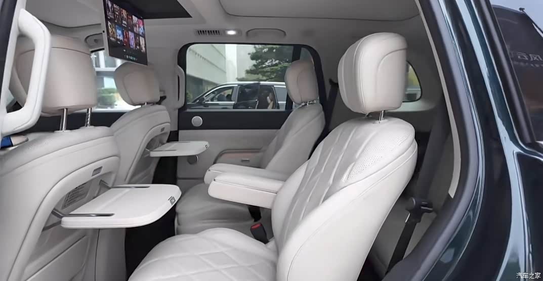 整体空间表现对得起车身尺寸,前排驾驶位空间宽敞,头部和腿部没有压抑感,不过空调出风口位置略侵占右腿膝盖空间,调整座椅后能缓解。二排是核心舒适区,独立座椅支持多向调节,还带有10点式按摩功能,虽然按摩力度偏轻,但长途乘坐能缓解疲劳。第三排适合儿童或身材娇小的成年人短途乘坐,长途舒适性欠佳。全车储物格设计贴心,前后排都有充足的水杯架和手机收纳位,日常使用很方便。