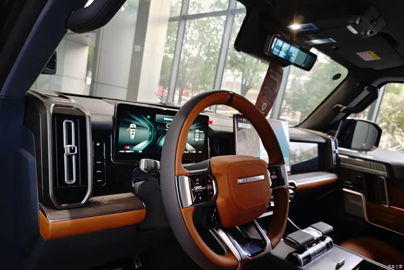 今天陪朋友去看车,专门试驾了2023款猛士917纯电基础版,市区开了一段路。车子是亚丁灰金属哑光漆配棕色内饰,颜值看着就很对味~ 试驾下来有不少话想说,先说优点,纯电驱动起步一点不拖沓,市区红绿灯起步、日常超车都干净利落,完全不像这么大一台SUV该有的笨重感,开着特别轻快,超出预期。然后是颜值,亚丁灰哑光漆质感绝了,搭配直棱直角的硬朗线条,机甲风拉满,开在路上回头率超高。还有悬挂也很舒服,过减速带、压井盖的时候滤震效果很好,车身不怎么颠,市区通勤坐着很惬意。