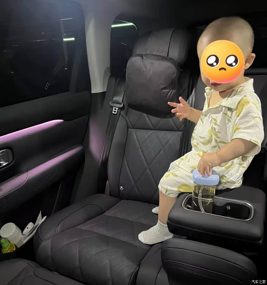 内饰配色耐脏,不用担心孩子弄脏,座椅包裹性不错,坐长途也不觉得累。扶手箱空间超大,能塞下露营的驱蚊液、充电宝这些零碎,门板储物槽也够深,放保温杯稳稳的。