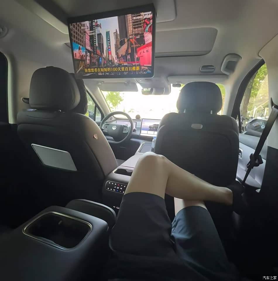 车内到处都是小储物格,门板能放保温杯,扶手箱能塞平板,孩子的零食玩具都有地方放。后备箱开口大,搬露营装备、小家电不用费劲,放倒第三排后,自行车都能直接塞进去。