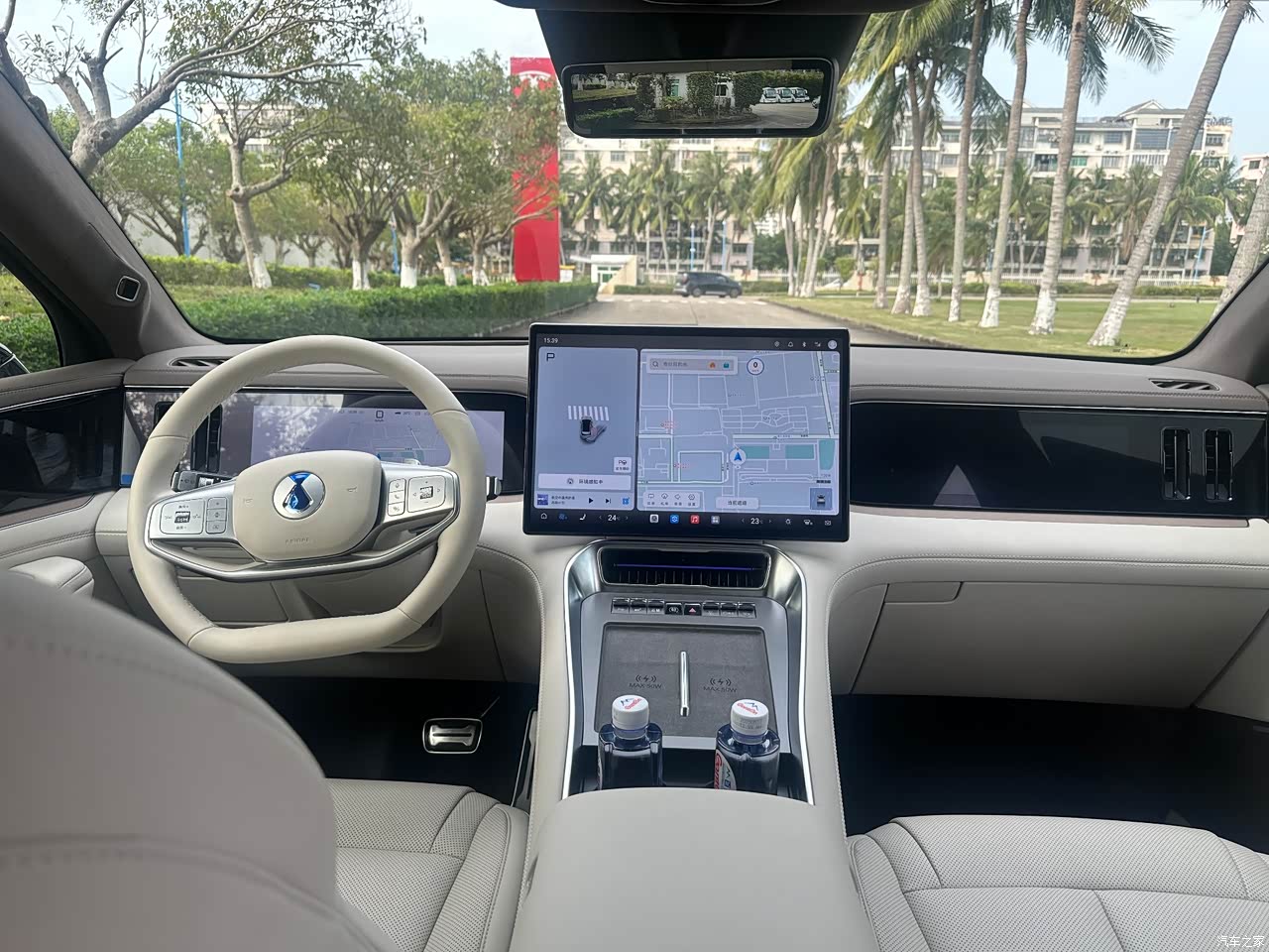 内饰配色我选的是云锦米,这颜色看着特别干净、柔和,在汕头这种阳光充足的城市,阳光透过车窗洒进来,整个车内都亮堂堂的,显得更温馨了。中控台、座椅、车门这些地方,大面积用了软质材料包覆,摸起来软软的,手感特别好。像中控台上面那一块,用手轻轻一按,能感觉到明显的柔软反馈,不像有些车硬邦邦的,触感差。还有座椅,表层是那种亲肤的面料,细腻又舒服,坐上去就像被温柔地包裹住一样 。