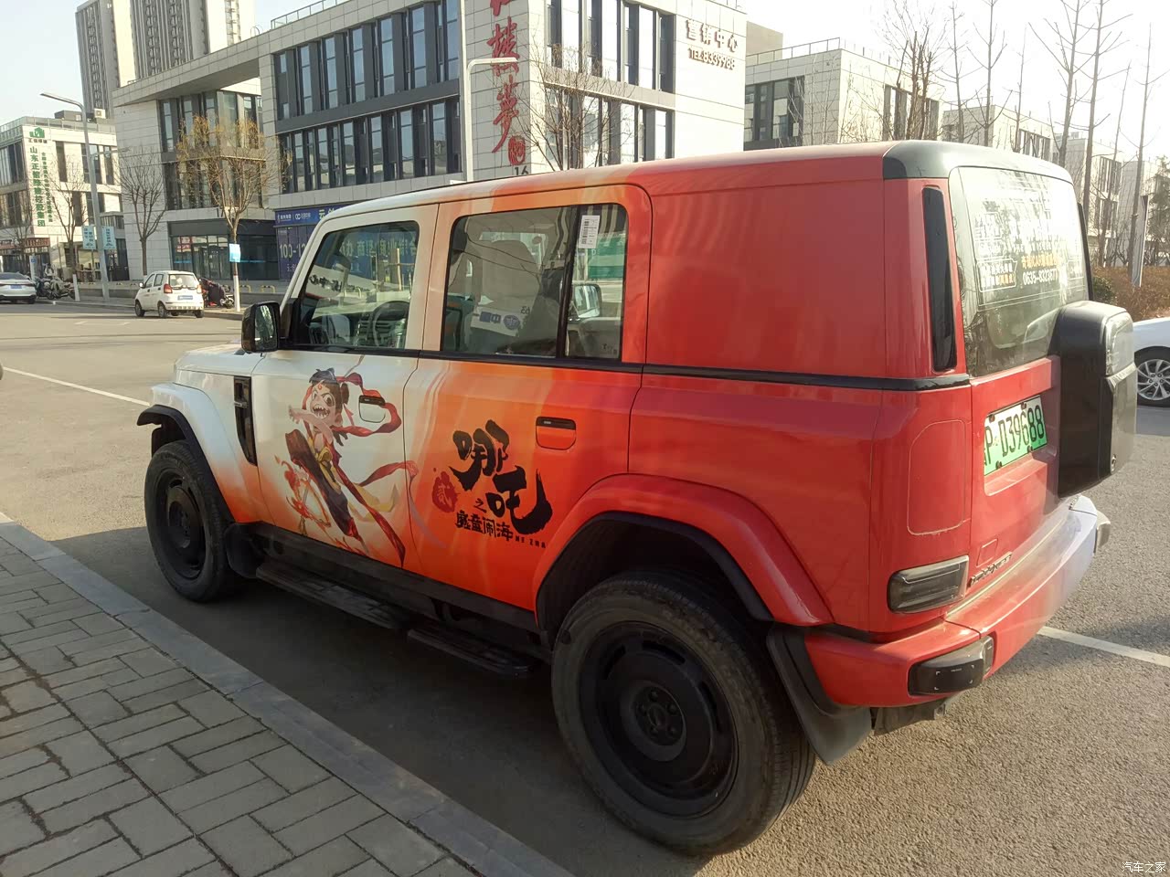 方盒子的外观。圆圆的大灯。前脸很是霸气。后尾有一个小书包。可以用来改装户外小桌子。车身很高。有踏板。矮个子的福音。前机盖不能打开。玻璃水是在机盖的一侧加。还可以改装为射灯。户外不错的选择