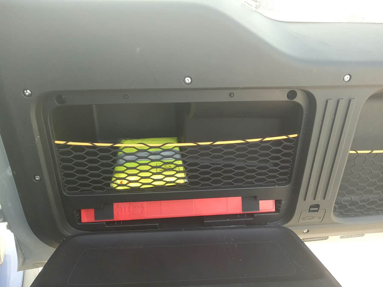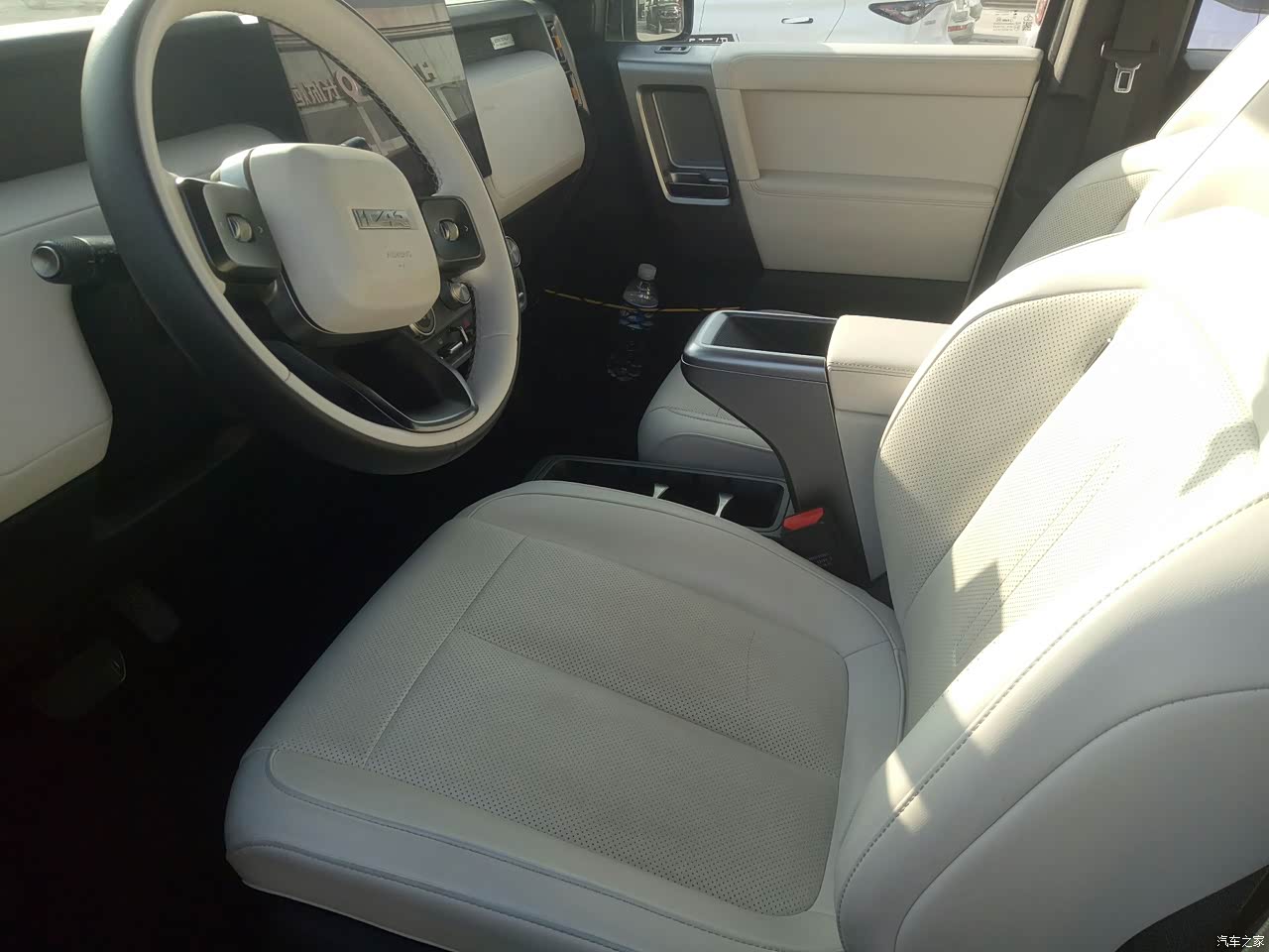 内饰的储物空间很多。车门上的是网状的。比较越野。内饰的大屏。还有复古的圆形按键。搭配很是好看。