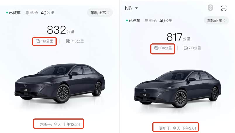 【关于哨兵模式】 耗电统计: 按WLTC口径满电续航130km计,熄火开启哨兵模式后,可同时监控前后左右四个方向,探测距离的远近可调,但综合来看,纯电续航里程减少速度为1km/h,也就是说停放24h后纯电续航减少24km,24h约消耗4度电。当动力电池电量小于35%时,哨兵模式会自动关闭。 使用建议:哨兵模式持续使用一年的成本约一千多度电,考虑到经济性,建议日常路边停车尽量停到有交通摄像头的地方,非必要不开启哨兵模式。 关于清晰度:清晰度一般,以左侧摄像头为例(图片是后视镜折叠状态),可以大致看清周围情况,但更细节的东西比如路过的汽车牌照号拍不清楚。 【关于360全景影像和倒车影像】 非常适合新手司机,对于车身位置的判断更加直观。 由于后视镜的调节比较繁琐,Pro版没有倒车后视镜自动下翻功能,所以我在倒车时都不再手动调节后视镜。 但也要注意:影像适合在光线条件好的地方使用,N6一共五个版本,三个中低配的没有前后驻车雷达,黑夜中还是要特别小心,避免剐蹭。对于开习惯了有驻车雷达的司机,还是要花点时间适应一下的。 【关于内置的行车记录仪(行车助手)】 车辆启动后,可开始录制前方画面,不录制左右以及后方,熄火后停止录像。 关于清晰度:可以大致看清路面情况,但更细节的东西比如路过的汽车牌照号拍不清楚,但在停车位上“怼脸拍”还是可以看清前方车牌的。
