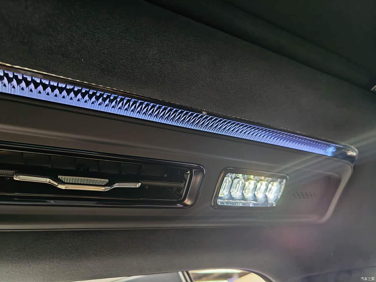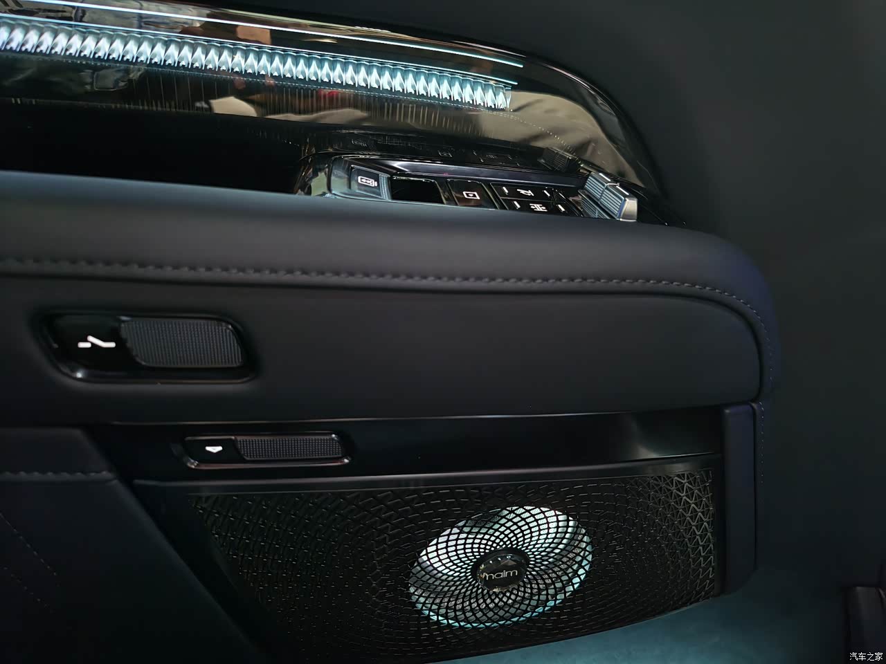 外观大气,第一眼被硬控住了,和库里南一个调性,妥妥的超豪尊贵感。现场的黑化版本很有个性,熏黑进气格栅、黑化车身装饰件,属于那种有实力又不张扬的感觉。车身尺寸非常巨大,长超5.2米、宽超2米的体量很有威严感和力量感,我非常喜欢。天地门设计对露营爱好者而言相当友好,最关键下半截还有两三百公斤的称重能力。