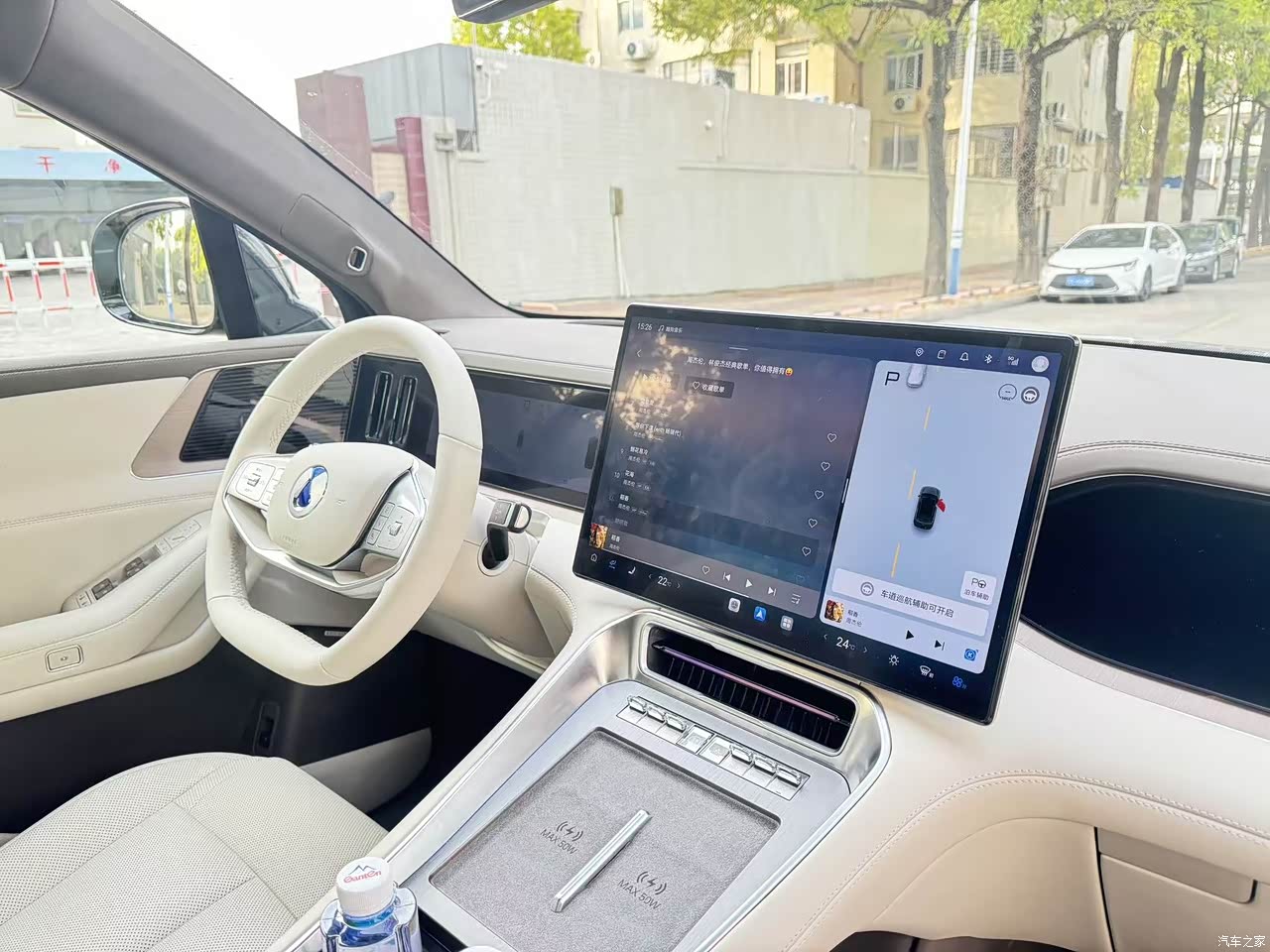 驾驶感受方面,整体表现中规中矩。动力上,平时市区通勤用纯电模式,起步轻快平顺,加速响应很及时,超车毫不费力。底盘悬挂虽然能过滤掉大部分细碎颠簸,但在过减速带或坑洼路面时,车身会有明显的晃动,有种“开船”的感觉。