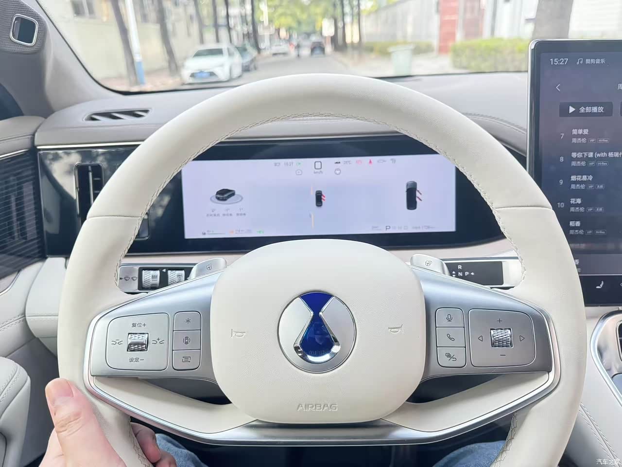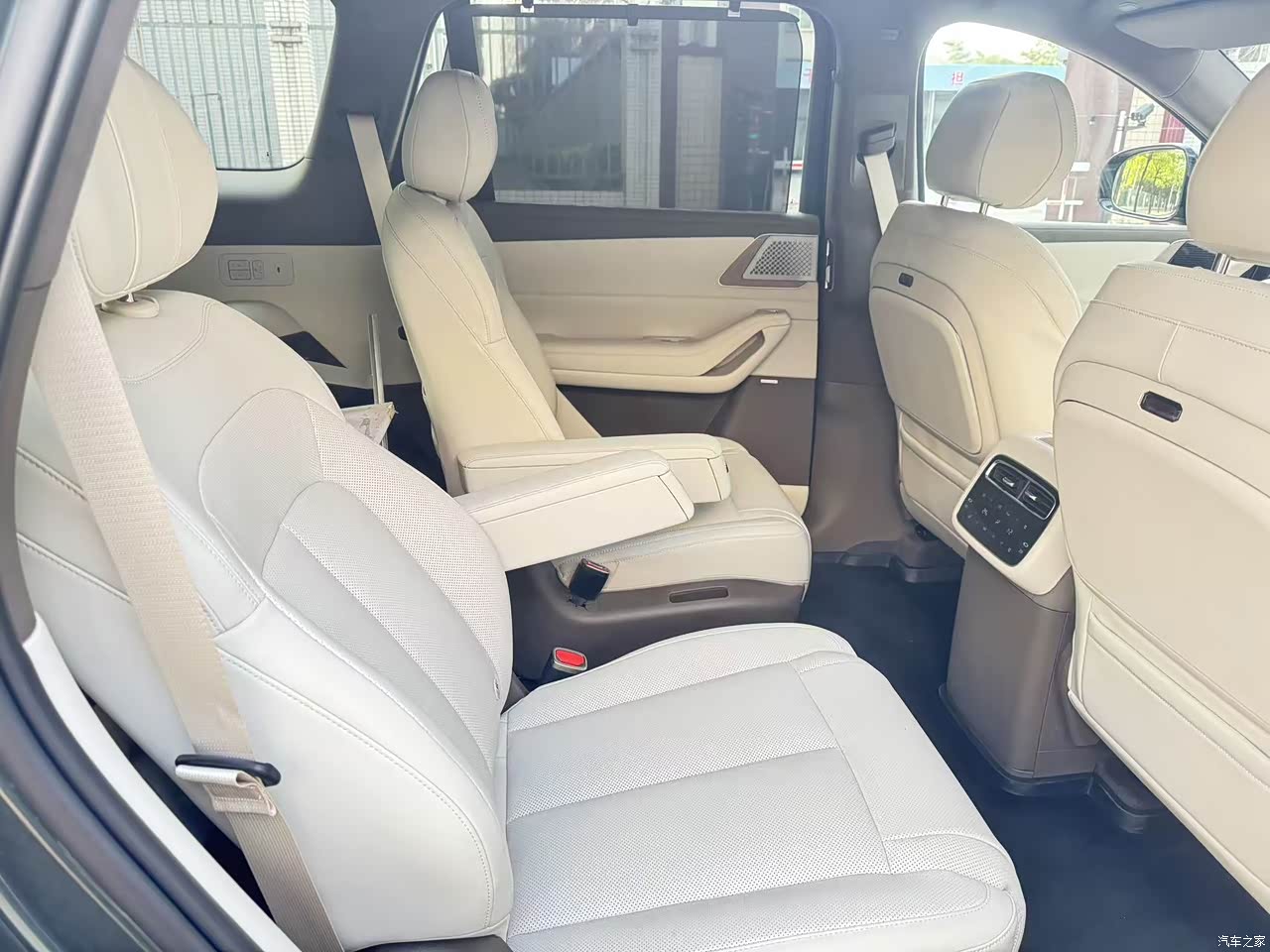 空间绝对是腾势N8L的核心优势,我身高180cm,调整好主驾驶座椅后,头部还有一拳两指的距离,腿部空间也很充裕,长时间开车不会觉得压抑。第二排的独立航空座椅是全家的“香饽饽”,第三排空间表现也不错,我媳妇乘坐也不觉得压抑。