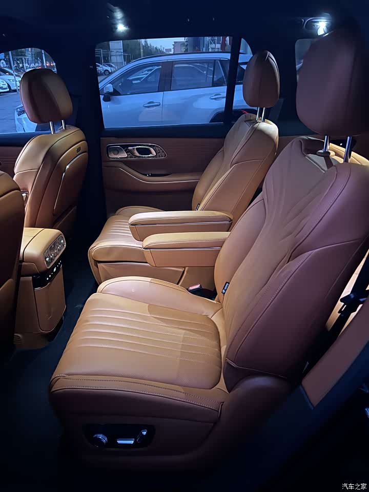 内饰在豪华感和科技感上营造得很到位。能接触到的地方用了大量软性材质和皮革包裹,触感很好。氛围灯、精致的金属饰条和木纹饰板搭配得恰到好处,显得很有格调。最值得一提的是前后排的座椅,填充柔软,包裹性佳,通风、加热、按摩功能一应俱全,长途乘坐真的是一种享受。有点遗憾的就是第三排没有按摩