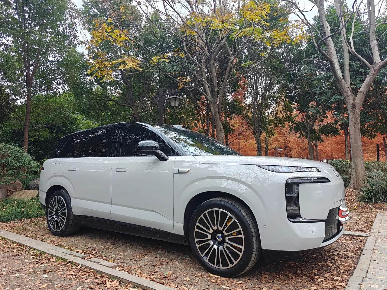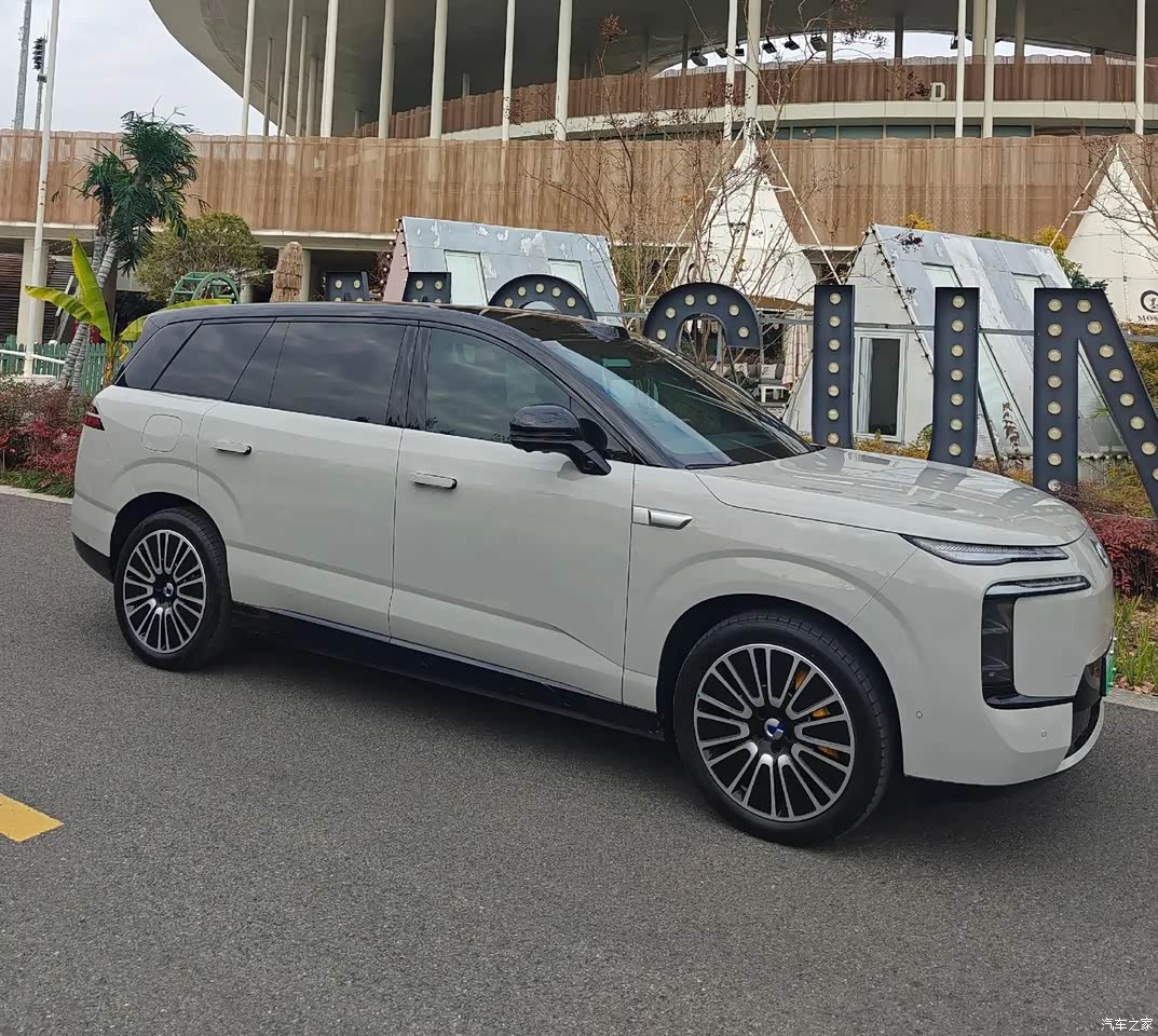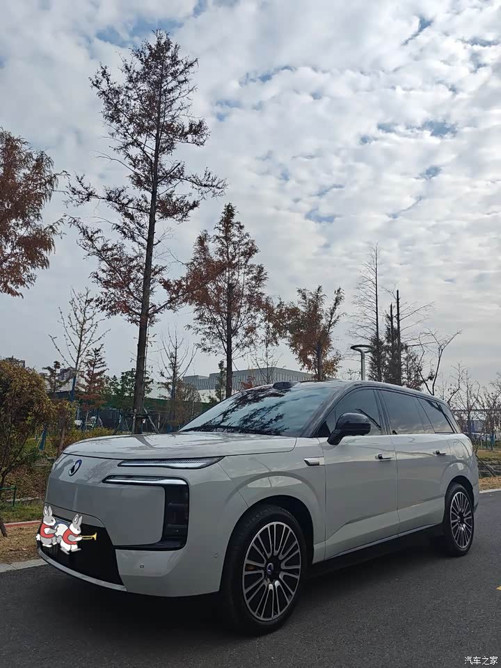 外观设计比较大气稳重,硬朗的车身线条很有大型SUV的质感,不浮夸但很有辨识度。车头的车灯设计很精致,封闭式中网看着很时尚,也符合新能源车型的定位。车尾的设计简洁大方,隐私玻璃的配置很实用,能保护后排乘客的隐私。
