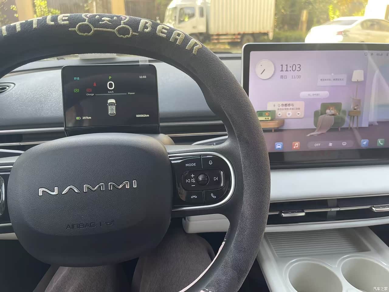 车机流畅度还行,但是没有高德地图,语音唤醒很快,一喊纳米01就会立马唤醒车机,可以通过语音控制空调,很方便。