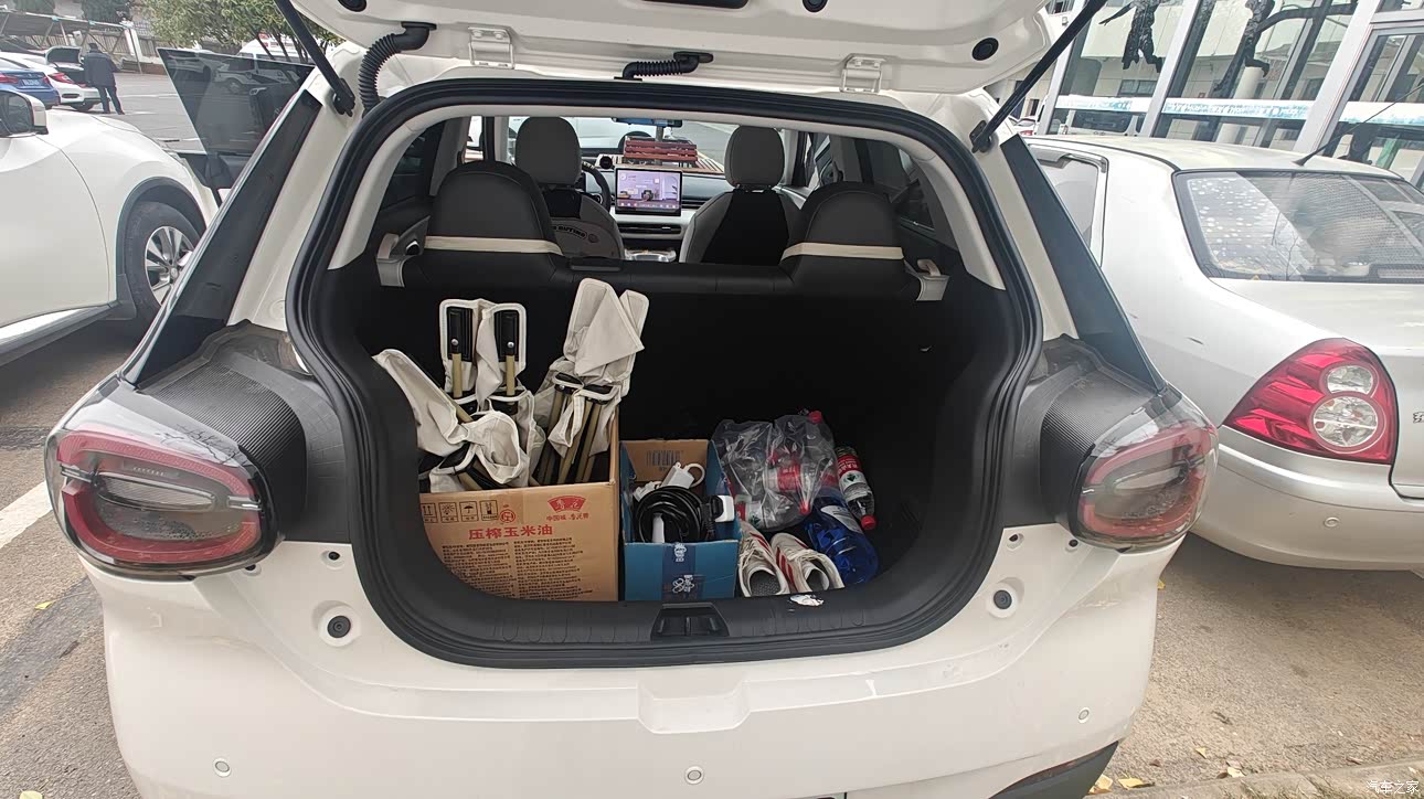 虽然是A0级小车,但是车内空间还是很大的,我身高1.8米坐驾驶位开着很舒适,头部空间一拳多,后排坐三个人无压力,还有前备箱盒,后备箱空间也不错。