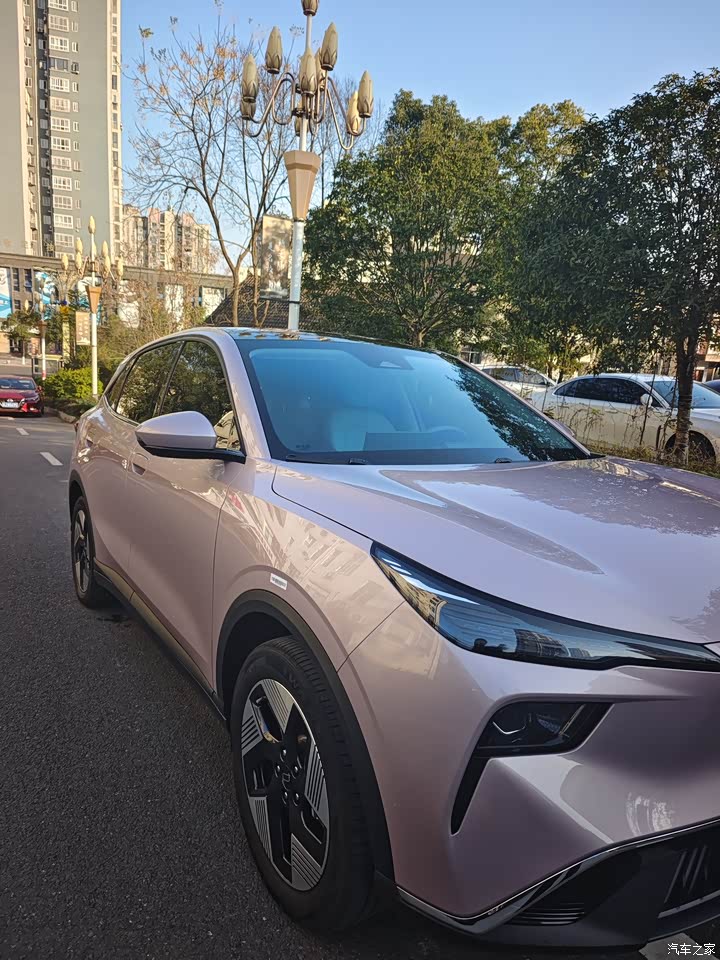 当初选车时,流樱粉这个颜色一下子就戳中了我,实际开在路上的回头率也很高。车身线条流畅自然,没有过于夸张的设计元素,整体风格偏向简约时尚,很符合我的审美。前脸的灯组造型精致,车尾的设计也比较饱满,搭配流樱粉的车身颜色,显得既灵动又有活力。这种耐看的设计,让我越开越觉得舒服。