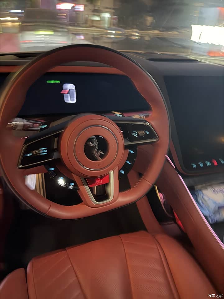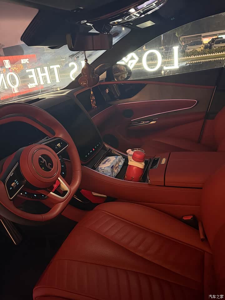 车里这个暗红色内饰,高级感拉满了!座椅更是没得说,软硬适中,包裹性特别好,头枕的位置刚好托住后脑勺,开车颈椎特放松。后排居然配了个冷暖箱,随时能喝到温度刚好的东西,这配置太贴心了!
