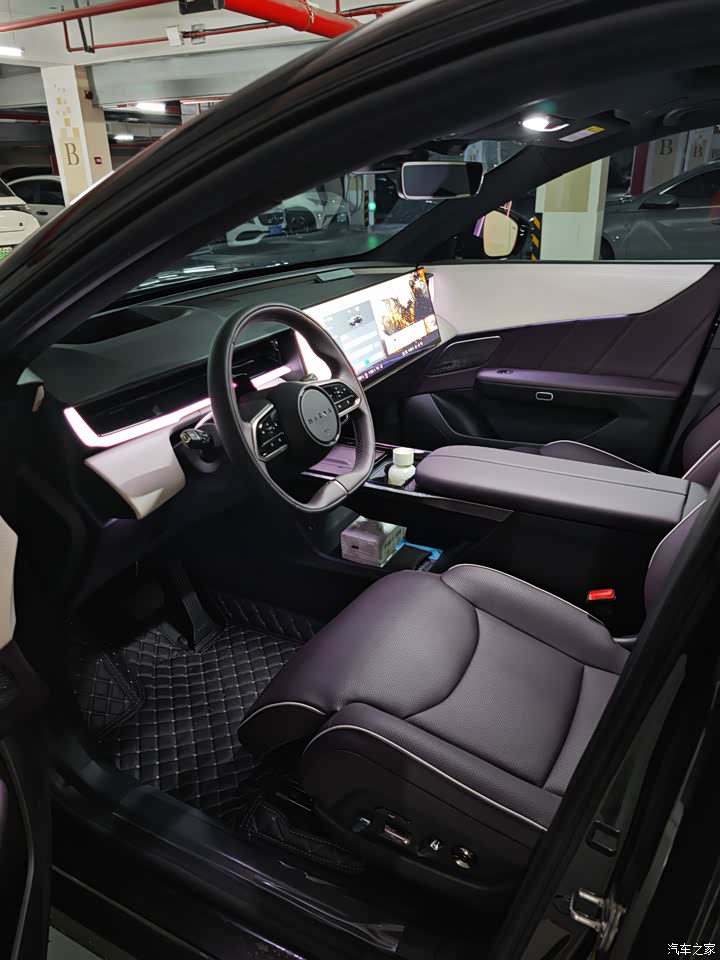26寸5K无界大连屏,手摸的地方基本都是皮革包裹,两个零重力座椅。缺点就是无线充电的地方是钢琴烤漆,容易刮花。