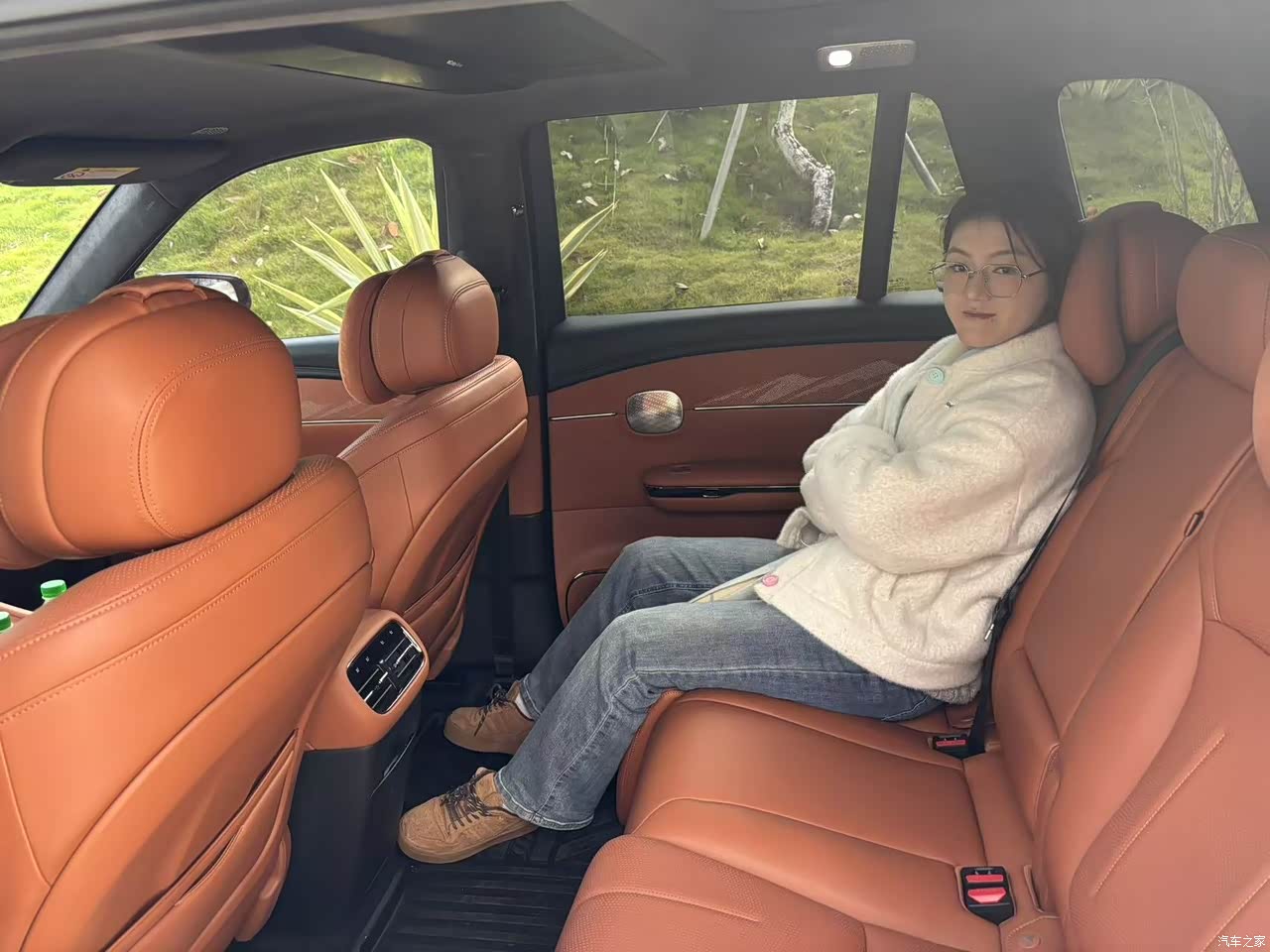 我身高1米83,调整好驾驶座后,头顶还有一拳半余量,腿部也不会觉得局促。后排空间更是惊喜,膝盖离前排靠背能有两拳多,孩子在后排翻跟头、老人跷二郎腿都毫无压力,137°可调的靠背加上电动腿托,长途乘坐也不会腰酸背痛。
