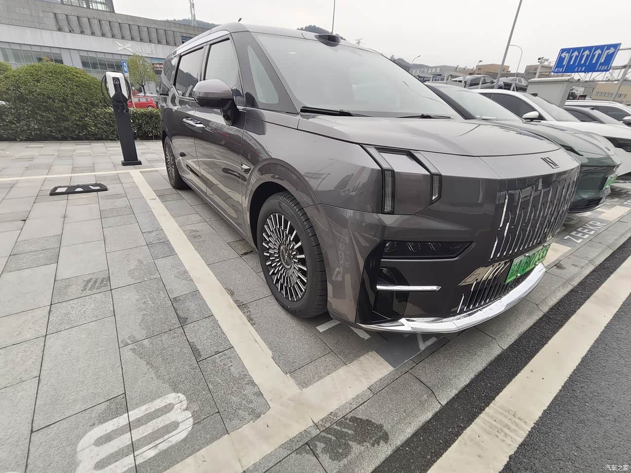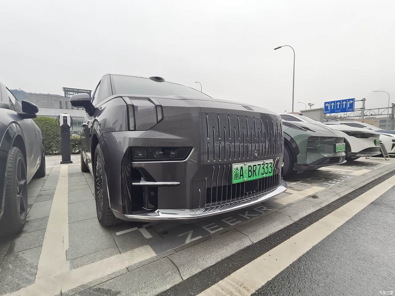 极氪009七座过道版的外观设计也是非常的好看,前脸采用大面积竖条纹镀铬格栅,搭配154颗LED灯珠组成的“光之泉”灯语系统,夜晚解锁或行车时,灯光呈现流水效果,辨识度极高,为车辆增添了强烈的科技感与仪式感。