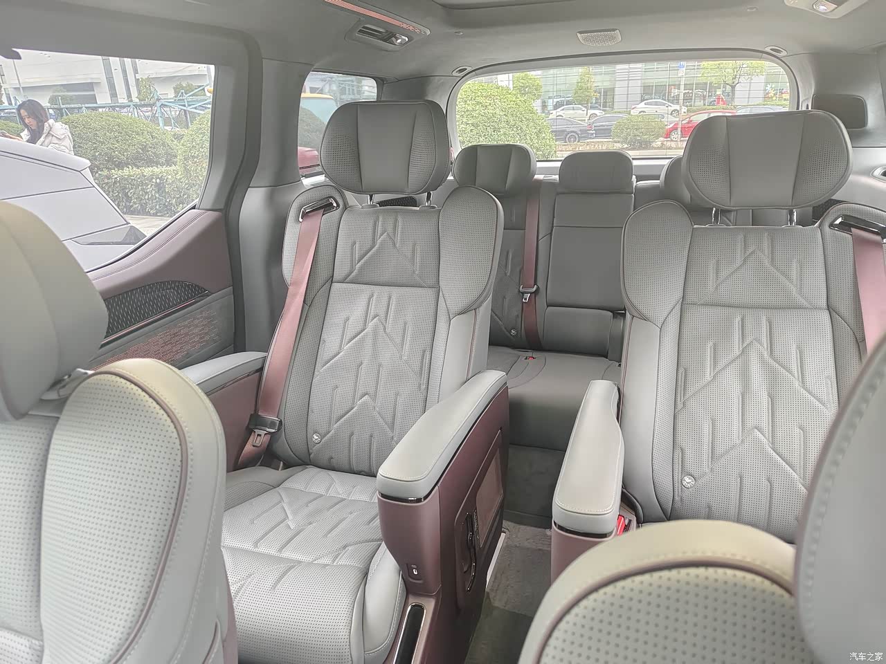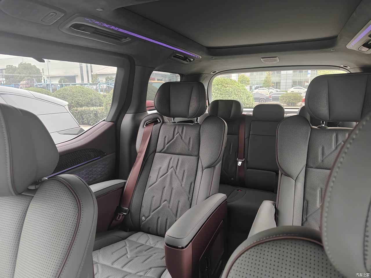 整车的空间设计非常的不错:177cm乘客调整好驾驶座后,头部仍有一拳四指余量;第二排座椅也是非常的给力,支持280mm前后滑动与靠背角度调节,180cm成年人乘坐时腿部空间超两拳,搭配加热、通风、按摩功能的航空级座椅,长途乘坐可一键切换至近乎平躺状态,老人孩子都能舒适休息。