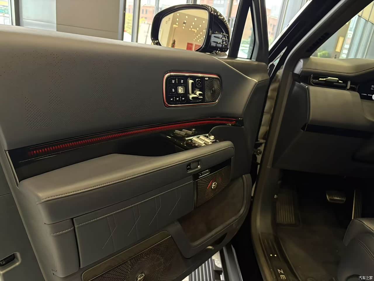 极氪9x的外观是没得说的“霸气外露” 整个车头造型不注意看就是劳斯莱斯啊。车长超5.2米,宽度超两米 让这个车非常非常的大,我一米八的身高感觉站旁边都显小。另外这个车大灯里面那个像星空一样的设计在近看的时候太吸睛了。